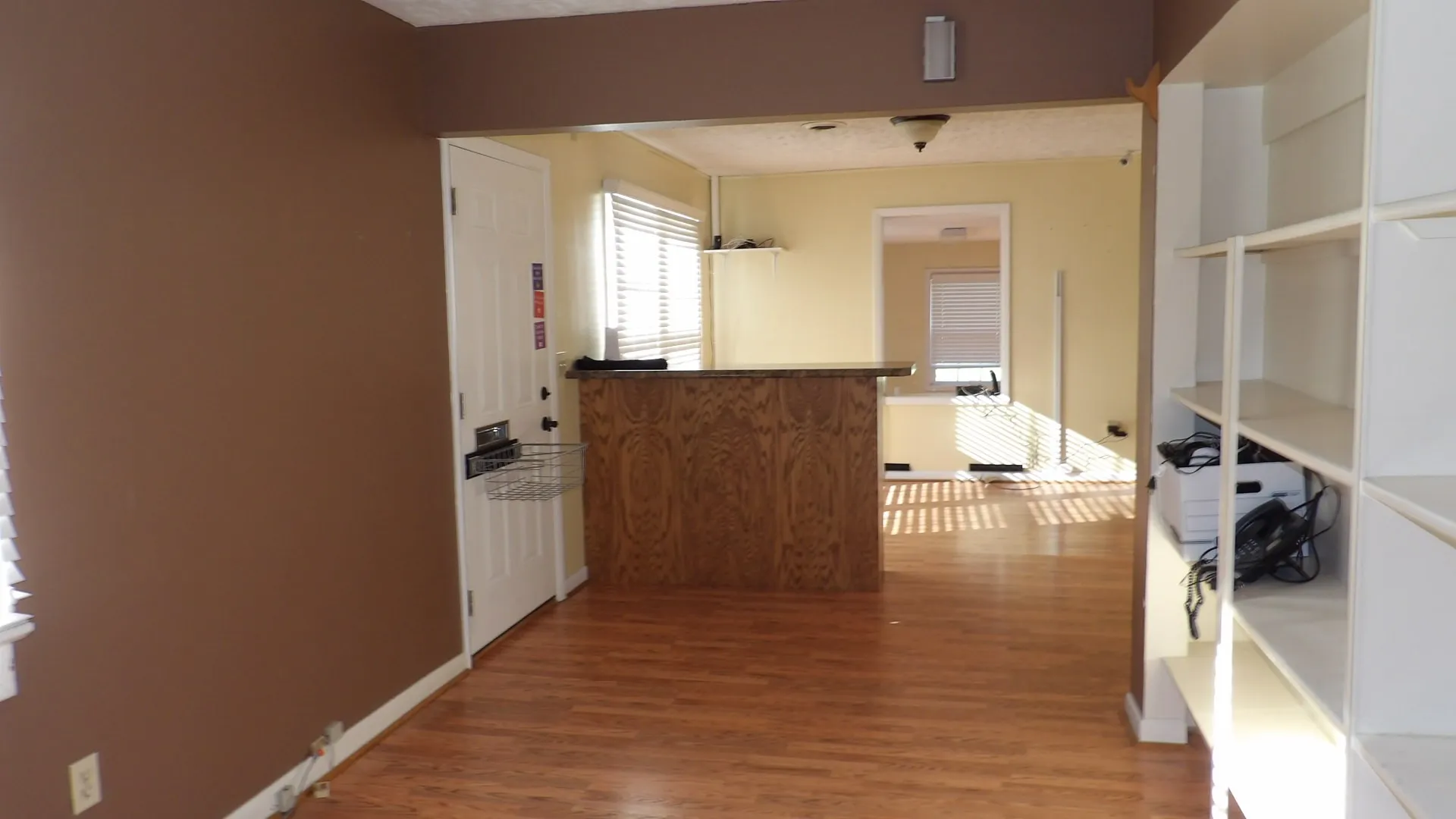 Good office location for small business. Lobby area, Conference room, multiple offices, storage room and closets, 2 full baths and 2 kitchens (building can be converted back to a duplex). Multiple parking and 3 entry doors. The brick business sign and business sign on corner of 4th and School St. stay. Shed stays as well.