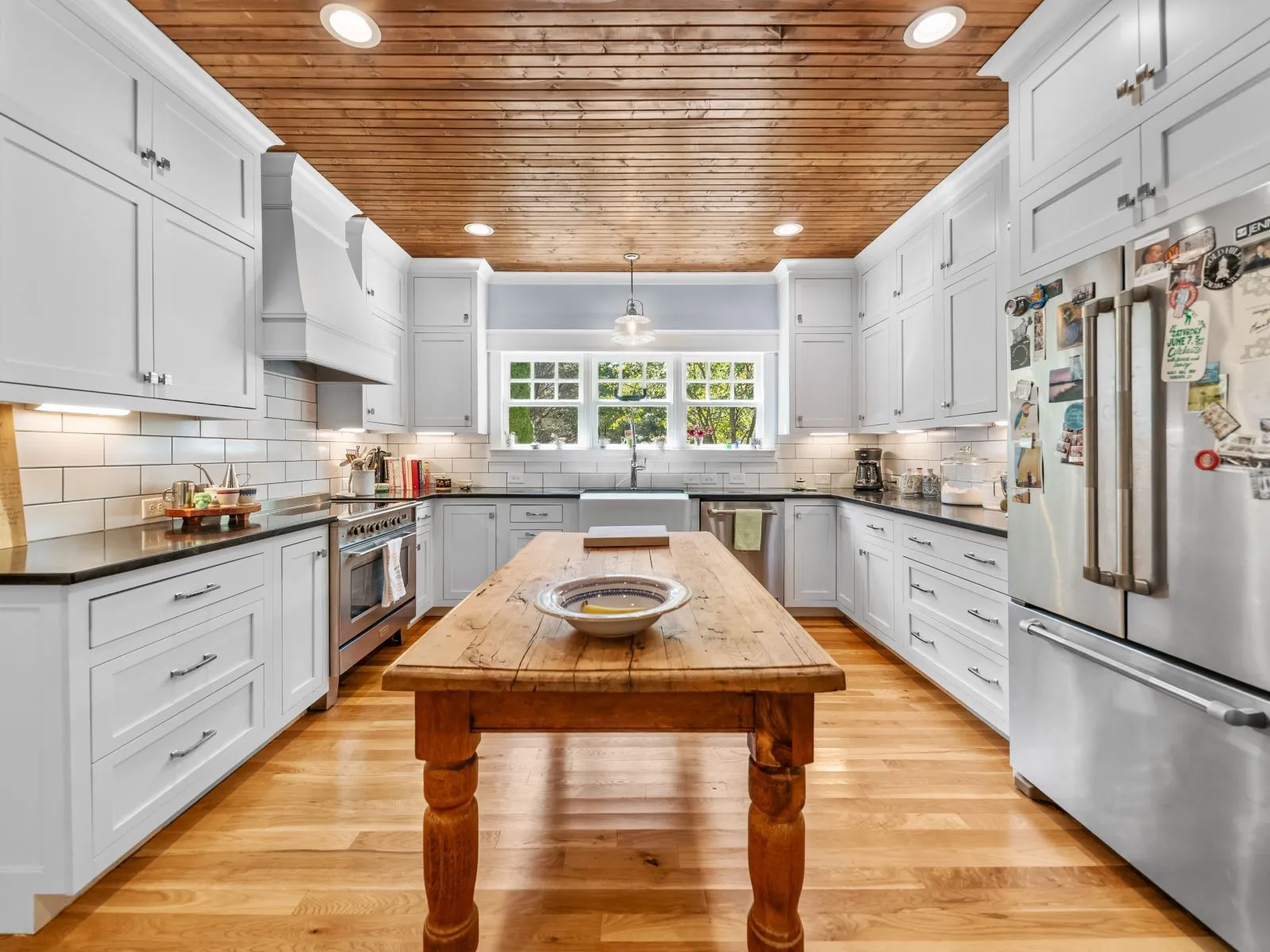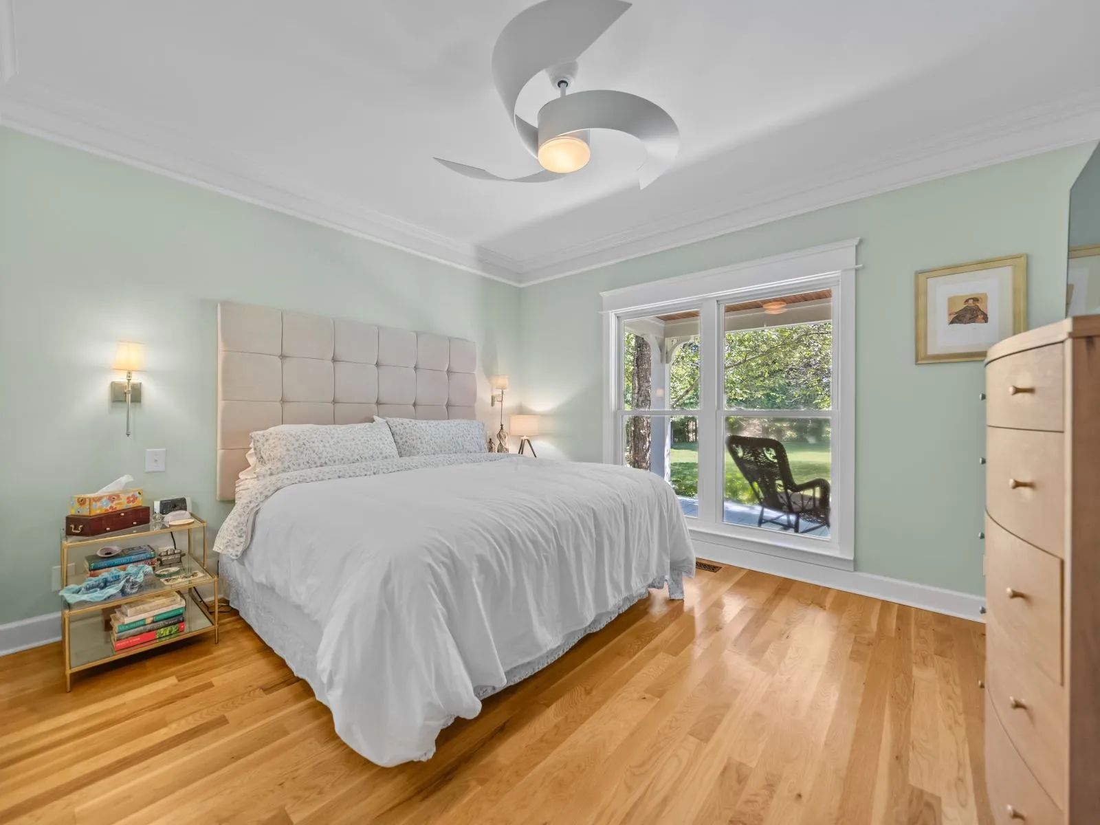 Notable finishes include 9-foot ceilings, locally milled white oak floors, solid-core five-panel doors with porcelain knobs, and designer lighting throughout.