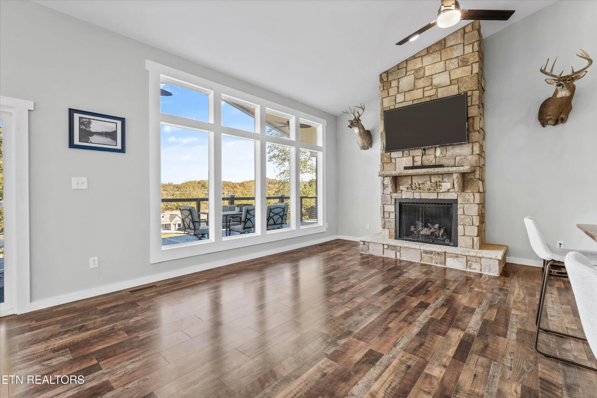 Situated on 1.48 acres of wooded land with stunning lake views, this 3 yr old home offers modern comfort and natural beauty. The exterior features a striking double-level porch and patio, perfect for relaxing or entertaining while soaking in the tranquil surroundings. Step inside to a bright, open main living area with a cathedral ceiling and expansive windows that flood the space with natural light. A cozy fireplace adds warmth and charm, creating an inviting atmosphere. The flow between the kitchen, dining, and upper living area is ideal for gatherings. The kitchen boasts a spacious pantry, perfect for storage and organization. The main level primary suite serves as a true retreat. It features a private walk-out to the covered porch, ideal for morning coffee or evening sunsets, and a luxurious en-suite bathroom with a large walk-in shower. The lower level offers a spacious rec room with a wet bar, perfect for movie nights or hosting guests. A full bathroom and two versatile rooms provide endless possibilities—use them as a home office, gym, guest rooms, or hobby spaces. Additional highlights include a 2-car attached garage for convenience and ample space for outdoor activities on the expansive lot. This home blends modern design with a peaceful, nature-inspired lifestyle, making it a perfect sanctuary. Schedule your showing today!