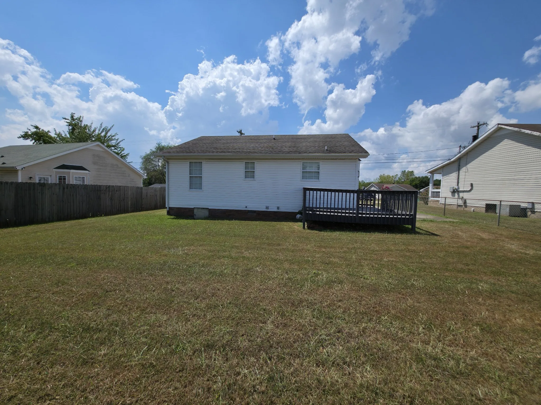 Don’t miss this beautifully updated home featuring a spacious eat-in kitchen, stylish modern fixtures, and a bright bay window in the dining area. The vaulted ceiling in the living room adds an open, airy feel, while the wraparound deck—starting from the side door and extending to the back corner—offers the perfect spot to relax or entertain. Enjoy the large backyard (3 sides fenced), ideal for outdoor gatherings, and the convenience of an included washer and dryer. Located just minutes from Fort Campbell and local shopping.