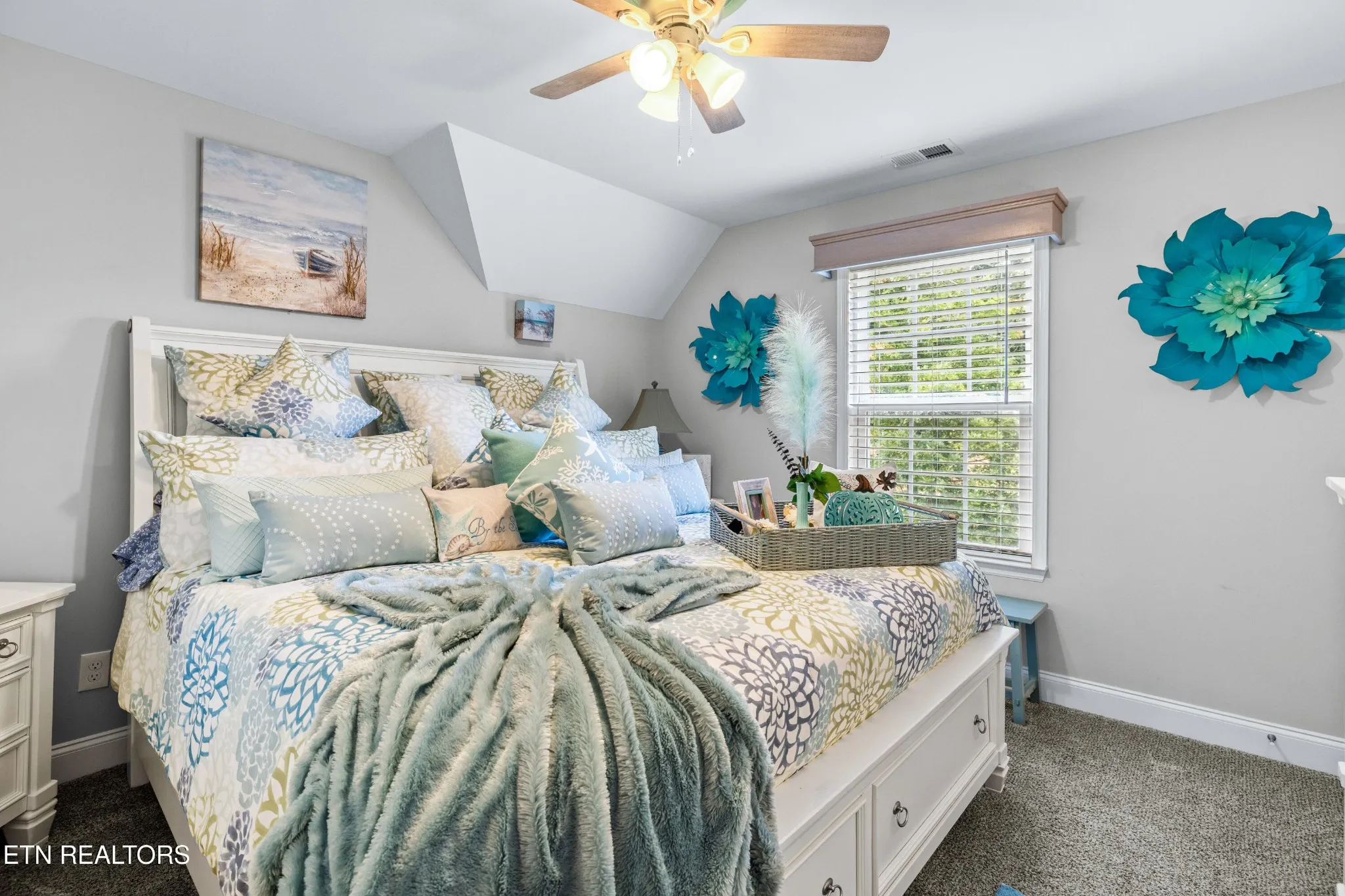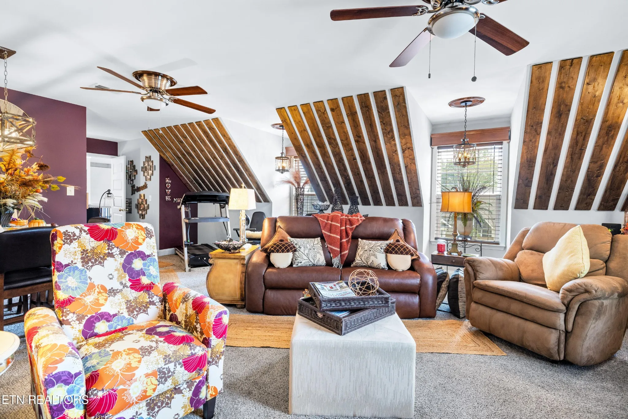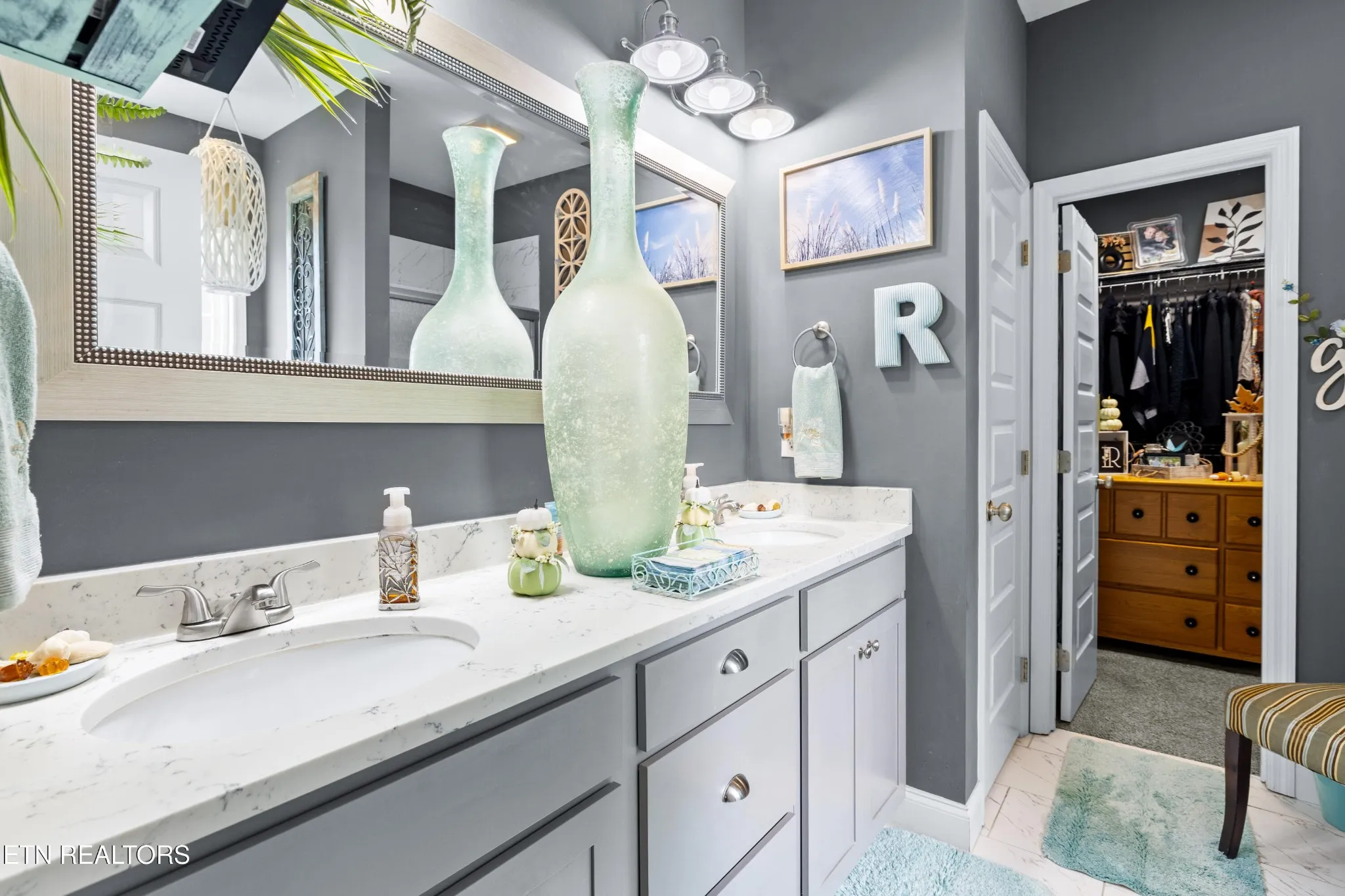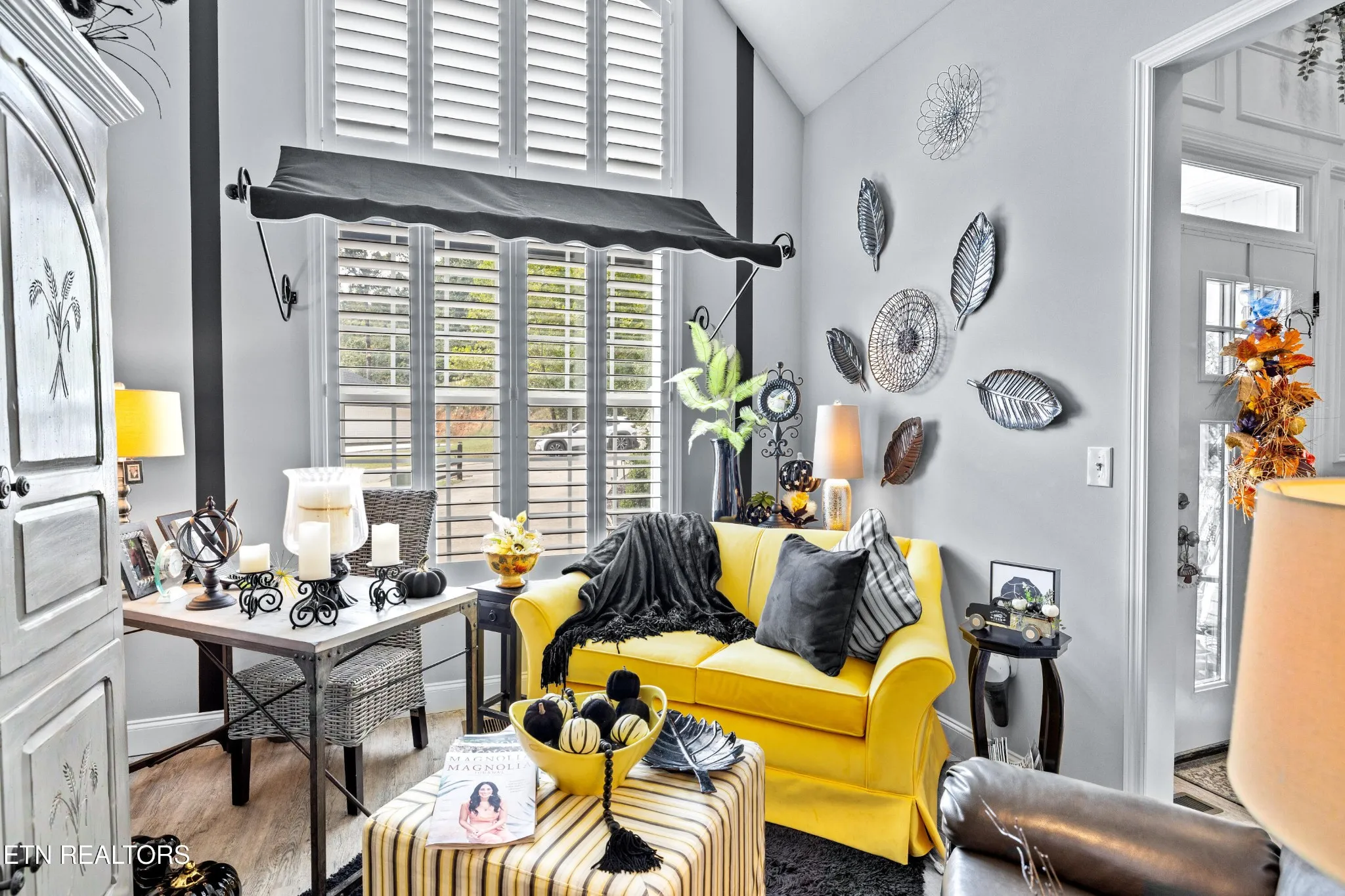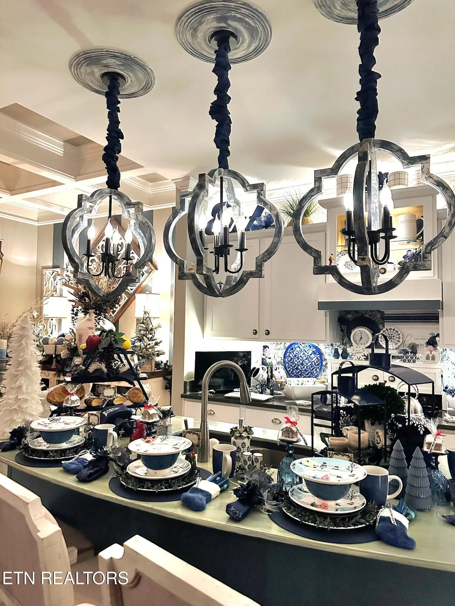 Welcome to this beautiful Lenoir City home, featuring thoughtfully designed finishes and plenty of living space. Inside you will find interior trim details that include crown molding, wainscoting, 5-panel molded doors, decorative beams in the living room and a coffered ceiling in the eat-in kitchen. The main-level primary suite features a grand trey ceiling with crown molding, a jetted tub, walk-in tile shower and walk-in closet. The kitchen is open to the living room with a large island, perfect for entertaining. Stainless steel appliances, including the refrigerator and wine fridge, complete the kitchen. Custom shutters and blinds accent every room including the garage. All bedrooms including the great room and bonus room have ceiling fans. Cable is hardwired in all rooms and the garage. The dining room can also serve as a sitting area or home office. Upstairs offers two additional bedrooms and one bath, plus a large bonus room with a walk-in closet, giving flexibility for guests or hobbies. Outdoor spaces include a screened deck overlooking the retention pond, where summer cattails create a beautiful natural backdrop. The screened deck features additional screening installed beneath the deck boards, plus a vaulted tongue-and-groove ceiling accented by a beam and ceiling fan. It is also pre-wired for cable, making it easy to enjoy TV outdoors. There are multiple flagstone patio areas in the backyard and around the retention pond which are perfect for relaxing and entertaining. Located at the end of the street and within city limits, this home combines comfort, style, and privacy. Buyer to verify all information including square footage.