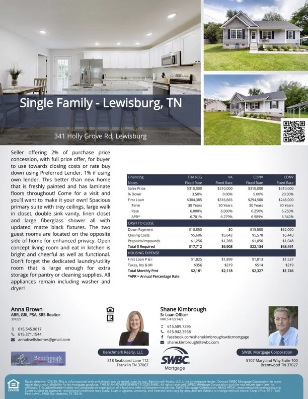 - Agent Name: Anna Brown, ABR, GRI, PSA, SRS