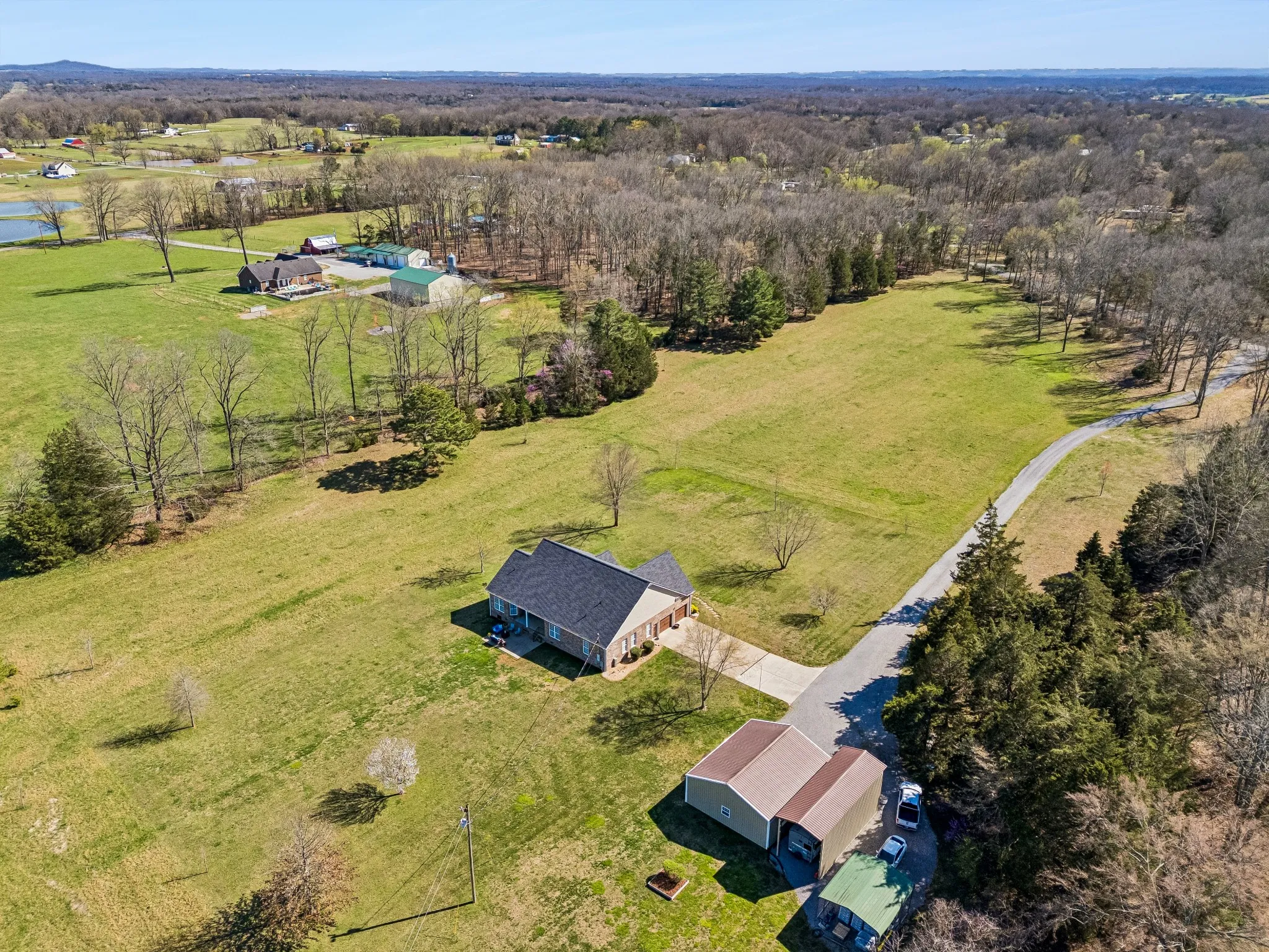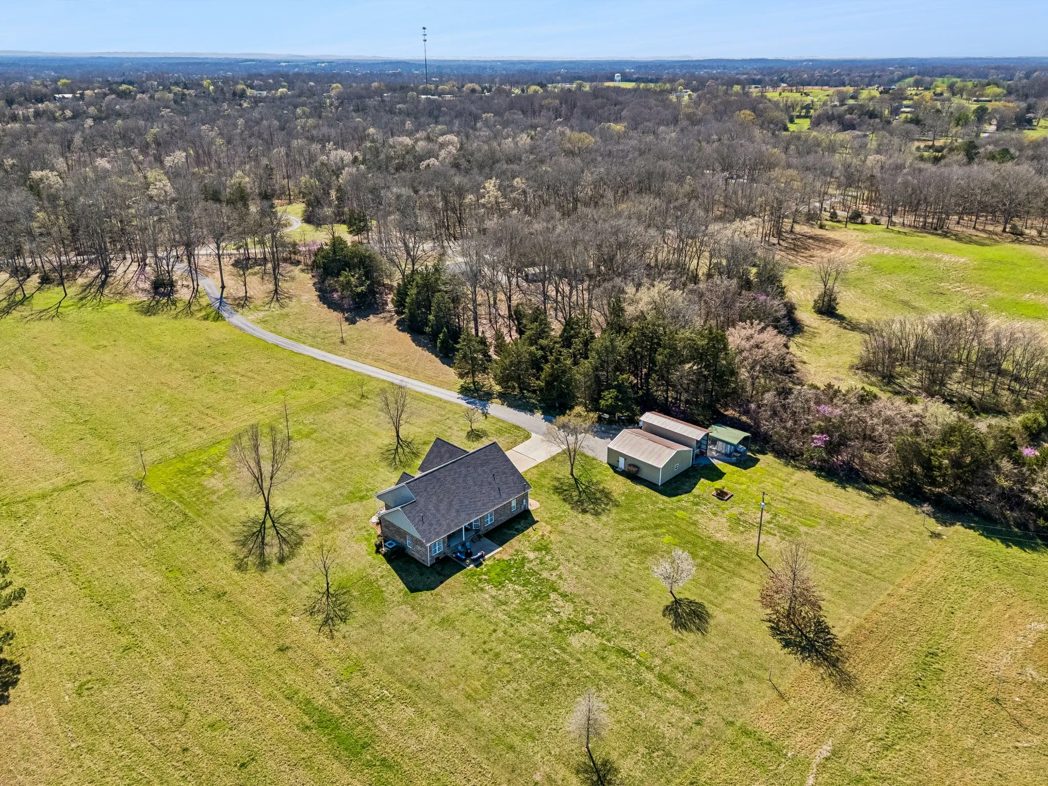 Stunning Property! Come live the country life you’ve always wanted to on this 15+- acre elegant homestead. Home offers 2982 sqft space with 3 bdrms and 2 full baths. Crown molding throughout and high ceilings. Solid 3/4″ hickory wood floors in family and dining area. Tile flooring in kitchen area and eat in kitchen area. Granite counter tops throughout. Custom hickory cabinets. All gas appliances. 250 gallon propane tank will convey with property. New architectural shingled roof 11/2024, Gas fireplace, whole house water filter and water softner, security system, tankless water heater, walk in closets ,window treatments stay, walk in attic storage, large craft closet, walk in pantry, highspeed internet provided by United Communications. Home is 900′ from road. large 36’X30′ detached garage/shop with 10′ entry way with power.40’X20′ RV cover on side of detached building. 25 or 30 minutes to I-840. Abundant wildlife all around. Must see property.