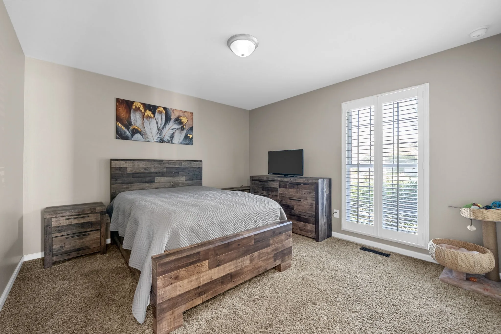 The primary suite offers a serene retreat with generous space and a private bath featuring granite surfaces and stylish finishes. Each additional bedroom is well-sized, providing comfort and flexibility for family, guests, or hobbies.\n