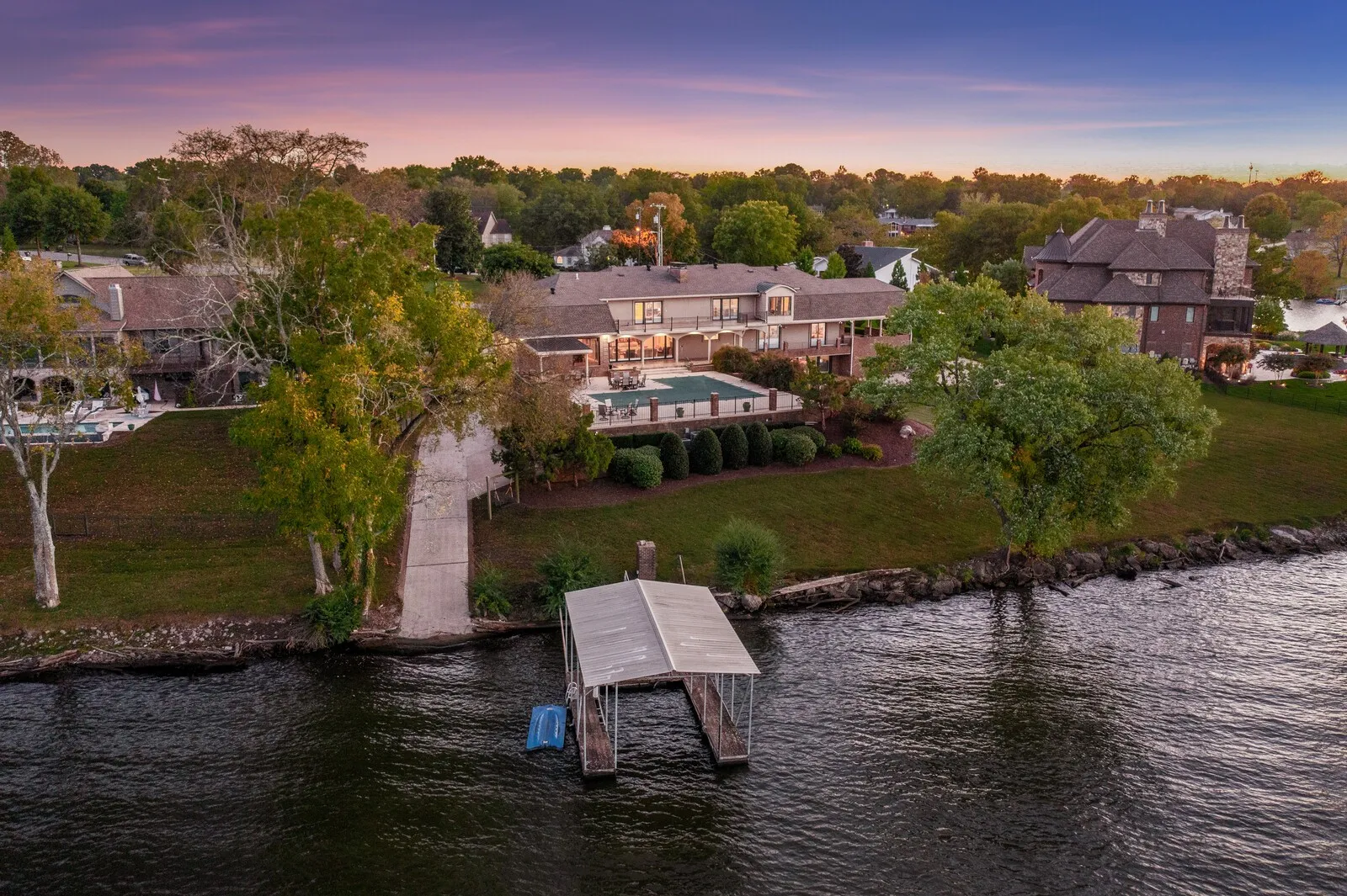 Welcome to 101 Kennett Rd, a breathtaking lakefront estate just 20 minutes from downtown Nashville. Nestled on the serene shores of Old Hickory Lake, this nearly 10,000-square-foot home offers an extraordinary blend of luxury, comfort, and effortless waterfront living in one of Middle Tennessee’s most desirable communities. The property features a RARE private boat ramp and dock with lift, providing unparalleled access to the lake for boating and water activities. Inside, you’ll find six spacious bedrooms and six bathrooms, designed with elegance and functionality in mind. The home includes an elevator for convenience and a huge basement ideal for family gatherings and entertaining. The primary suite offers stunning lake views and a spectacular custom closet, perfect for organizing in style. Step outside to a backyard oasis with a fenced-in Gunite salt water system pool, overlooking Old Hickory Lake, creating the ultimate setting for relaxation or hosting guests. Entertain with ease using the outside kitchen area with bar seating and granite bar top.Start of the art appliances that will come with this home include: sub-zero stainless steel refrigerator, Bosch stainless steel dishwasher, stainless steel ice maker, warming drawer, upright separate freezer, and convection oven/gas range. This is a rare opportunity to own a true waterfront masterpiece just minutes from the heart of Nashville.