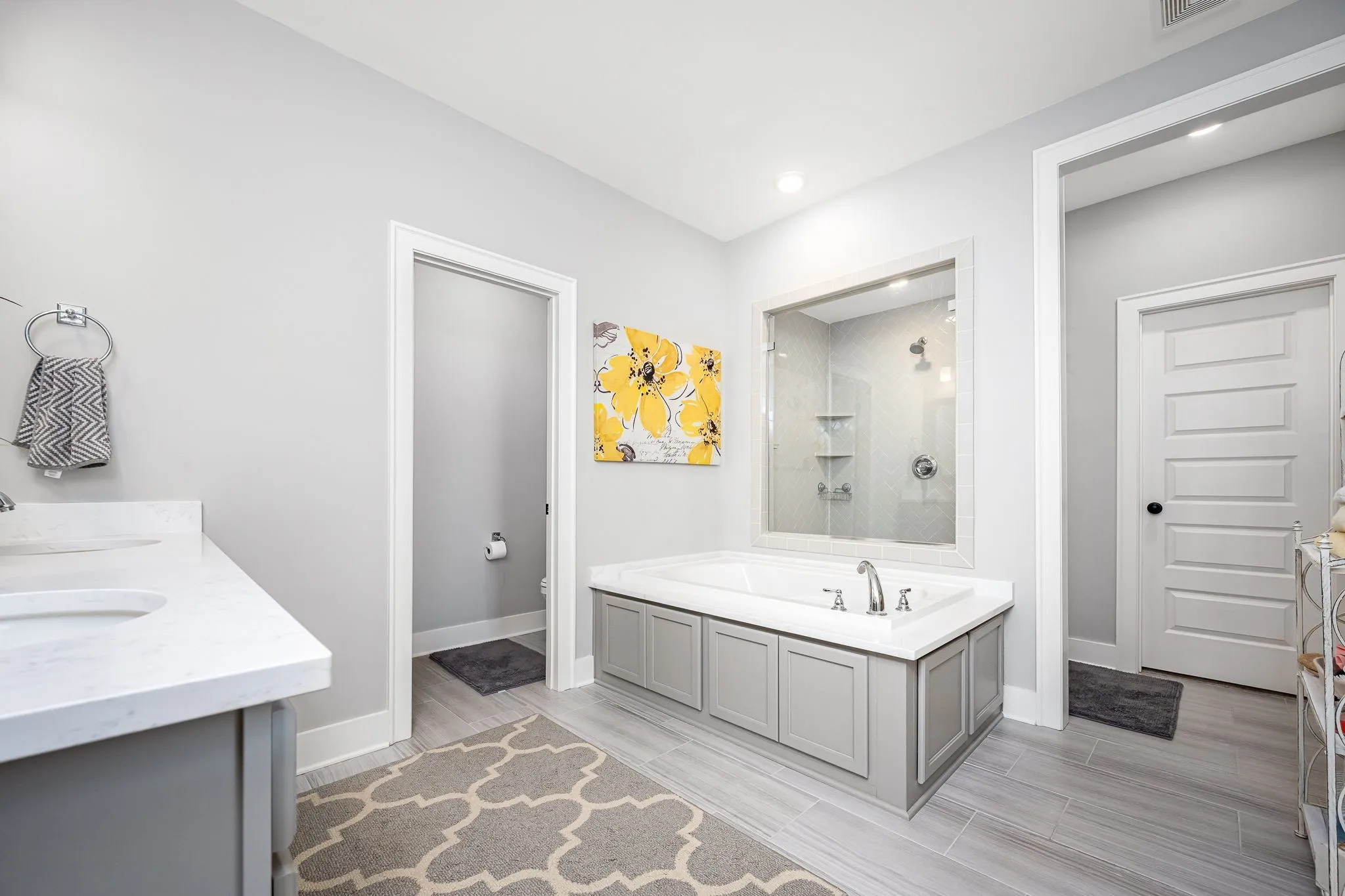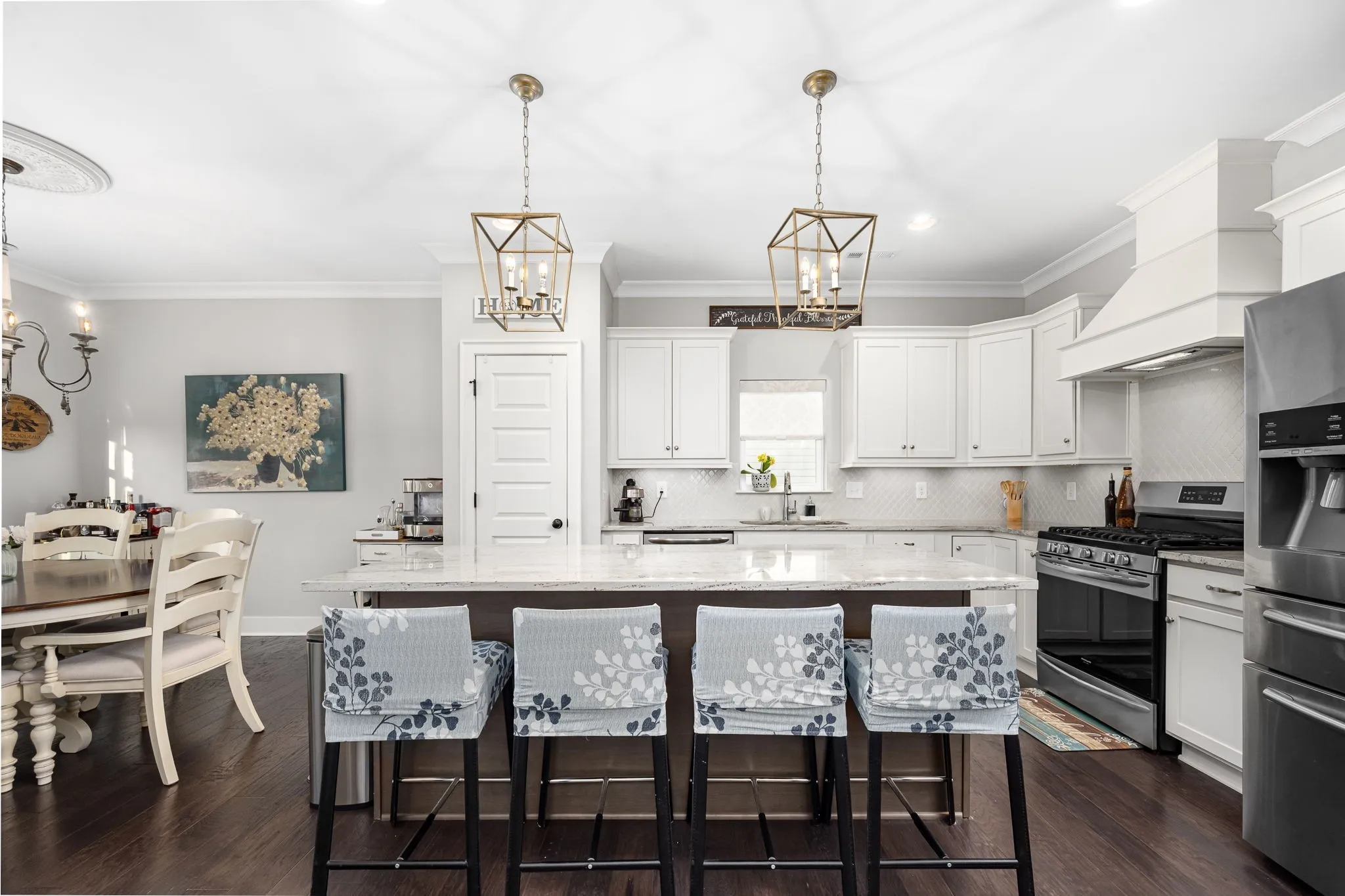 Inside, thoughtful upgrades make life easier—custom closets, a laundry room with cabinetry and a sink, and overhead storage in the garage already set up for you.\n