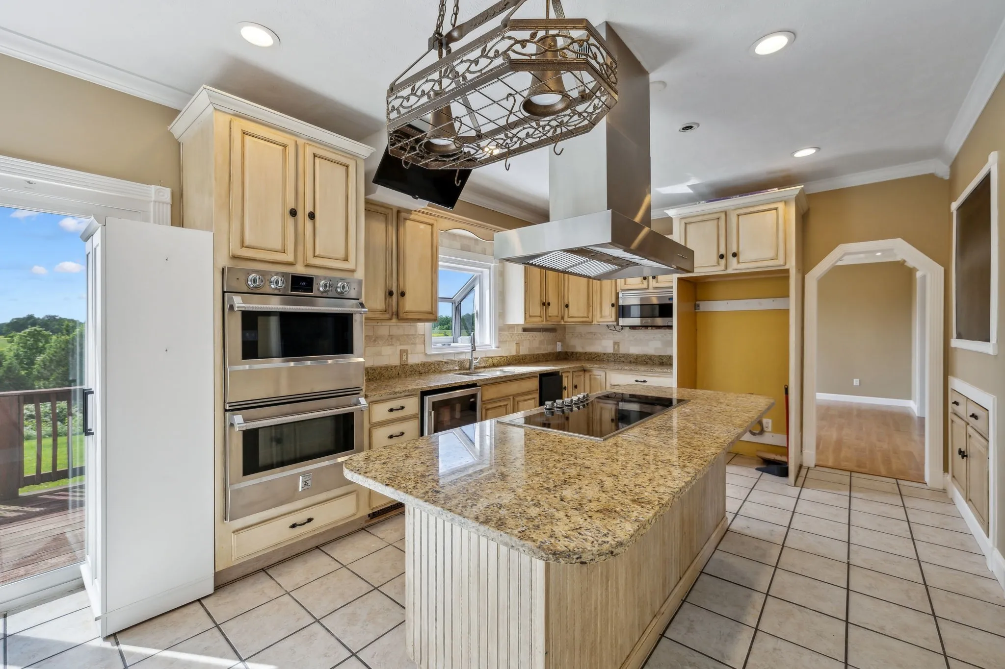The chef’s kitchen features modern appliances, ample cabinetry, and generous counter space. The home includes two primary suites, one on each level, providing flexibility for guests or multi-generational living.