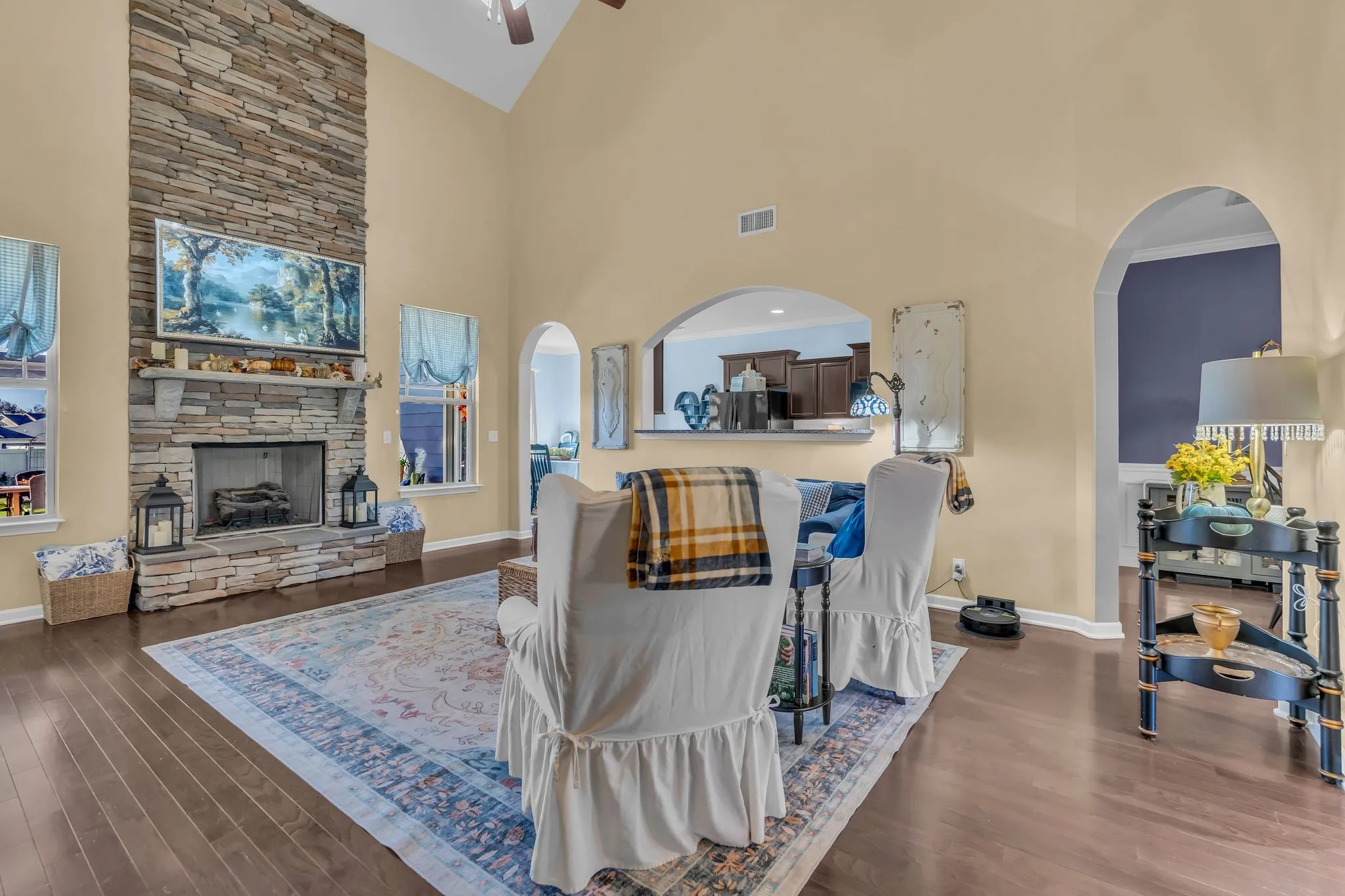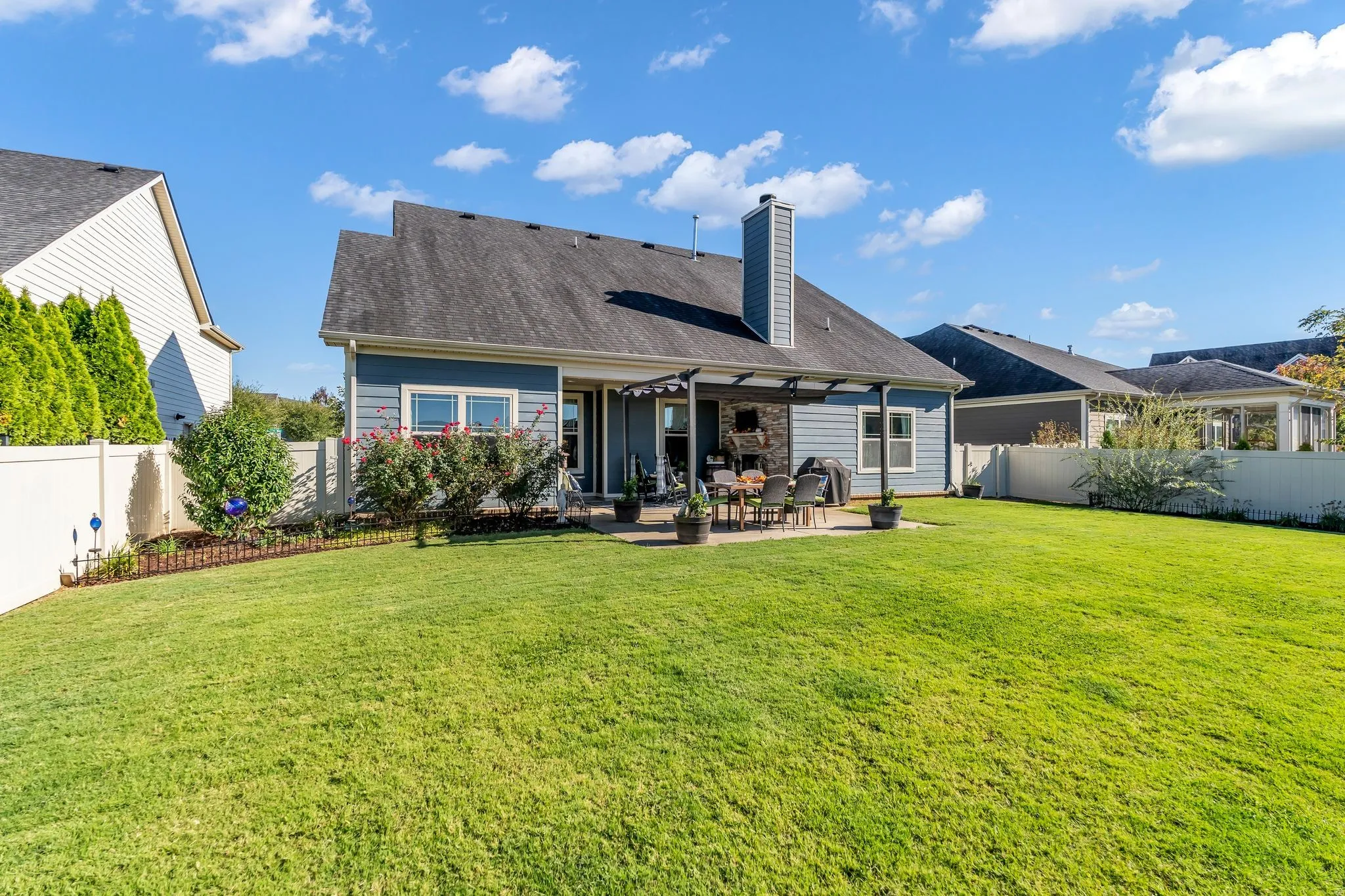 The primary suite is conveniently located on the main level and overlooks a stunning backyard oasis. The two-story family room features a soaring stone fireplace. The kitchen includes granite countertops, plenty of cabinets and is open to the living and dining area, perfect for entertaining. Upstairs, you’ll find three bedrooms, two full baths, and a large bonus room offering plenty of flexible space. Step outside to a covered patio with a wood-burning fireplace and enjoy the beautifully landscaped, fenced yard — filled with vibrant flowers, lush shrubs, and plenty of room to relax or play. Easy access to 840 and I-24, restaurants, shopping, and hospitals. Neighborhood amenities include 2 pools, 2 clubhouses, and sidewalks for easy walking or strolling.