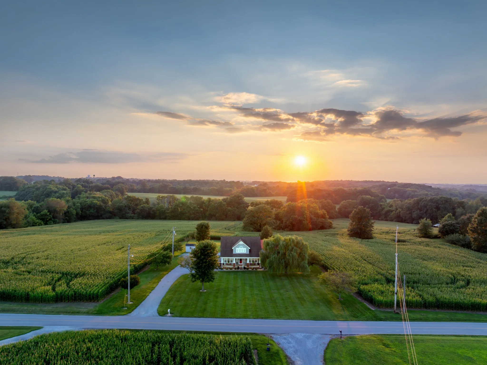 Reduced! Surrounded by picturesque farmland, this charming retreat offers the perfect blend of country serenity and modern comfort. The impressive 48×27 detached garage/workshop is ideal for car enthusiasts, hobbyists, or anyone needing serious storage space. Step inside to find generously sized bedrooms, including a main-level primary suite, two bedrooms up PLUS a dedicated office//hobby room—perfect for remote work or creative pursuits. Unwind on the 36×11 screened back porch overlooking peaceful views or sip sweet tea on the spacious covered front porch with dual swings. Enjoy the rare combination of tranquility, pastoral charm and lower costs–NO HOA, no city taxes, no sewer bill. This home has it all!