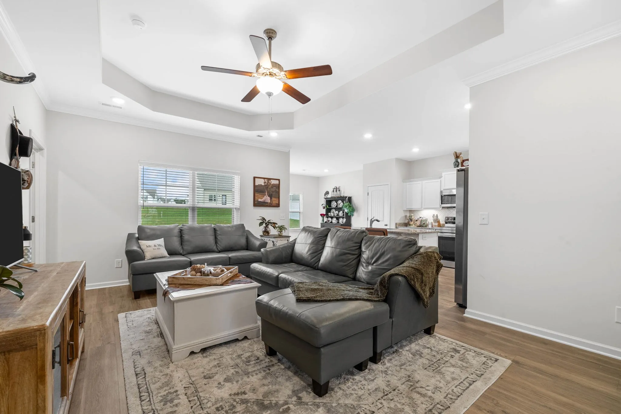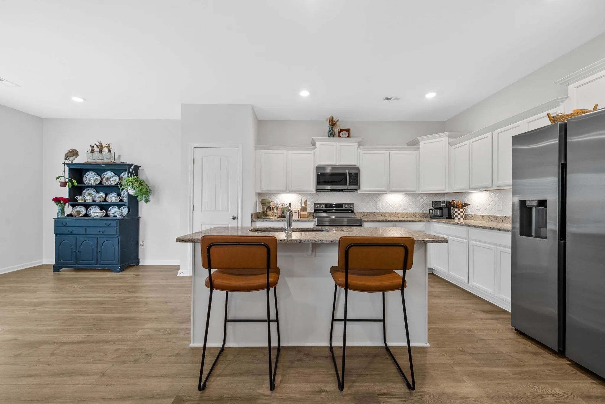 Single-level 3-bed/2-bath in coveted Creeksbend (North Murfreesboro 37129)—built 2023 and feels brand-new. Preferred lender offering $3900 towards buyer cosing costs or rate reduction. Open concept living with a split bedroom layout, modern kitchen with granite, tile backsplash, under-cabinet lighting, pantry, and stainless appliances that remain. King-size primary suite features double vanity, walk-in shower with bench, and a walk-in closet that connects directly to the laundry for everyday convenience. Extra shelving in every closet. Level 0.35-acre lot with an oversized backyard plus covered front porch and rear patio. 2-car garage with pull-down attic storage. Low-fee HOA with sidewalks and a scenic community walking trail along the river with pavilion and grill. Quick access to I-840/commuter routes; zoned Walter Hill Elem, Siegel Middle & Siegel High. Move-in ready, efficient, and easy to love—schedule your showing today.