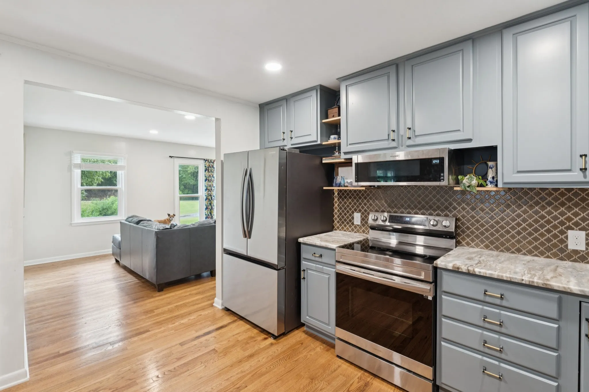 Beautifully remodeled brick ranch on ~5 acres ready for you to move in! With high-speed fiber internet available and a gravity-flow spring supplying water to the house, this place is the perfect combination of country living with modern convenience. House is 1,794 sq ft, just renovated throughout with new windows, new HVAC, stainless steel appliances, leathered granite countertops, and new flooring to complement the original refinished hardwoods. With three beds and two baths, two large living areas, a gorgeous open kitchen, and multiple covered porches and patios, there’s space here for everyone to spread out! The full unfinished basement is accessible from the inside or out and has shelves built around the perimeter for storing both your Christmas decor and home-canned goods! Two brand new water tanks totaling 800 gallons supplement the 1,000 gallon water tank located at the spring.