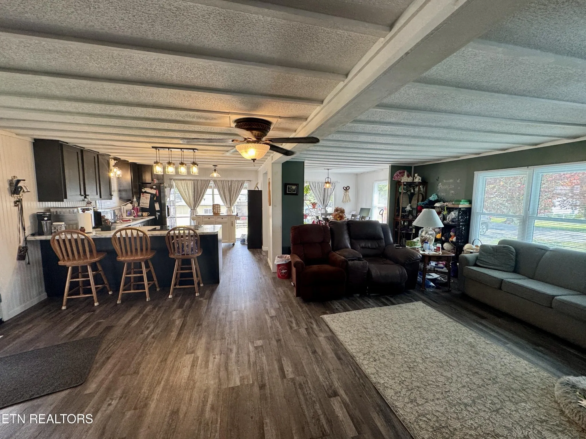 Unbelievable transformation .. tastefully and beautifully completed interior for an amazing modern look and feel…comfortable living, open concept…interior w/upgraded floor covering, all interior walls & ceilings painted, new toilets in baths, some new windows in front, covered front & rear decks,, new deck railing on front, recent metal roof on home, garage & storage bldg. , new garage door, partially finished basement room w/gas wall burner in place (previously used for additional sleeping area) partially fenced back yard, detached garage w/new overhead door & loft (fully insulated for storage) , detached workshop/storage bldg, In town for convenience to shopping, medical, dining, etc. Note:/ Washer & Dryer, Refrigerator currently in house, and Dehumidifier do NOT convey Sellers will provide another refrigerator