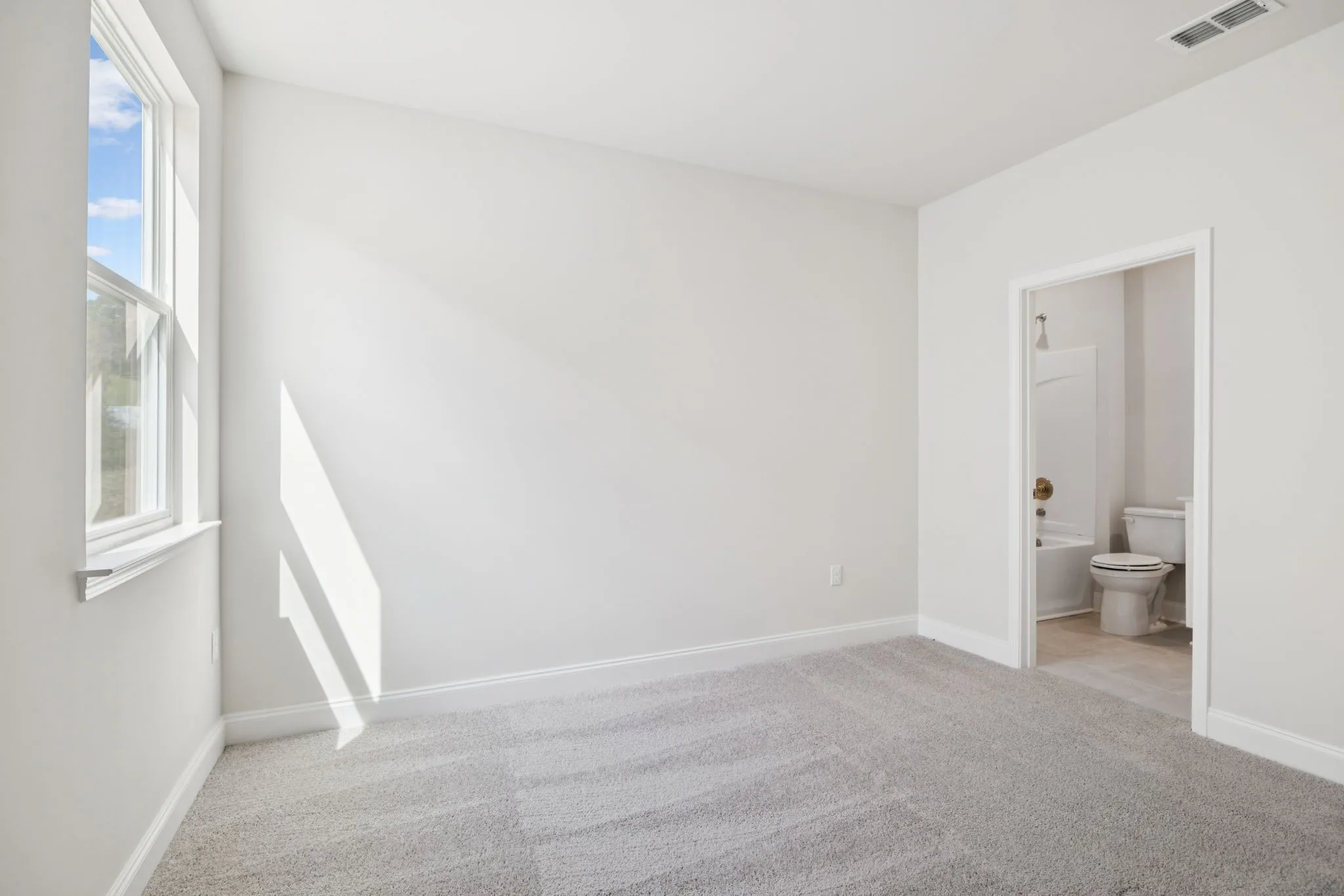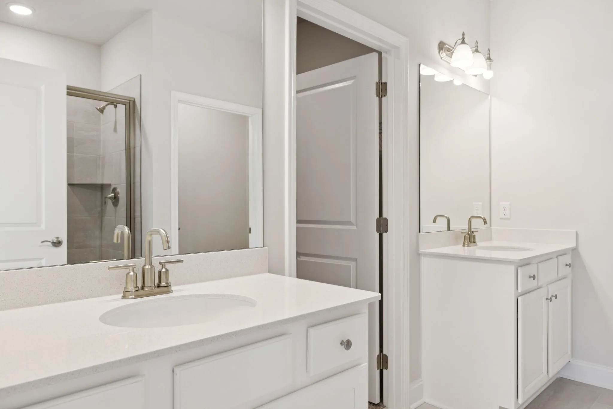 Each of the two secondary bedrooms has its own full bathroom, while the primary suite, located just off the living room, provides a private retreat. Additional highlights include luxury vinyl plank flooring throughout the main living areas and a convenient laundry room at the garage entry.