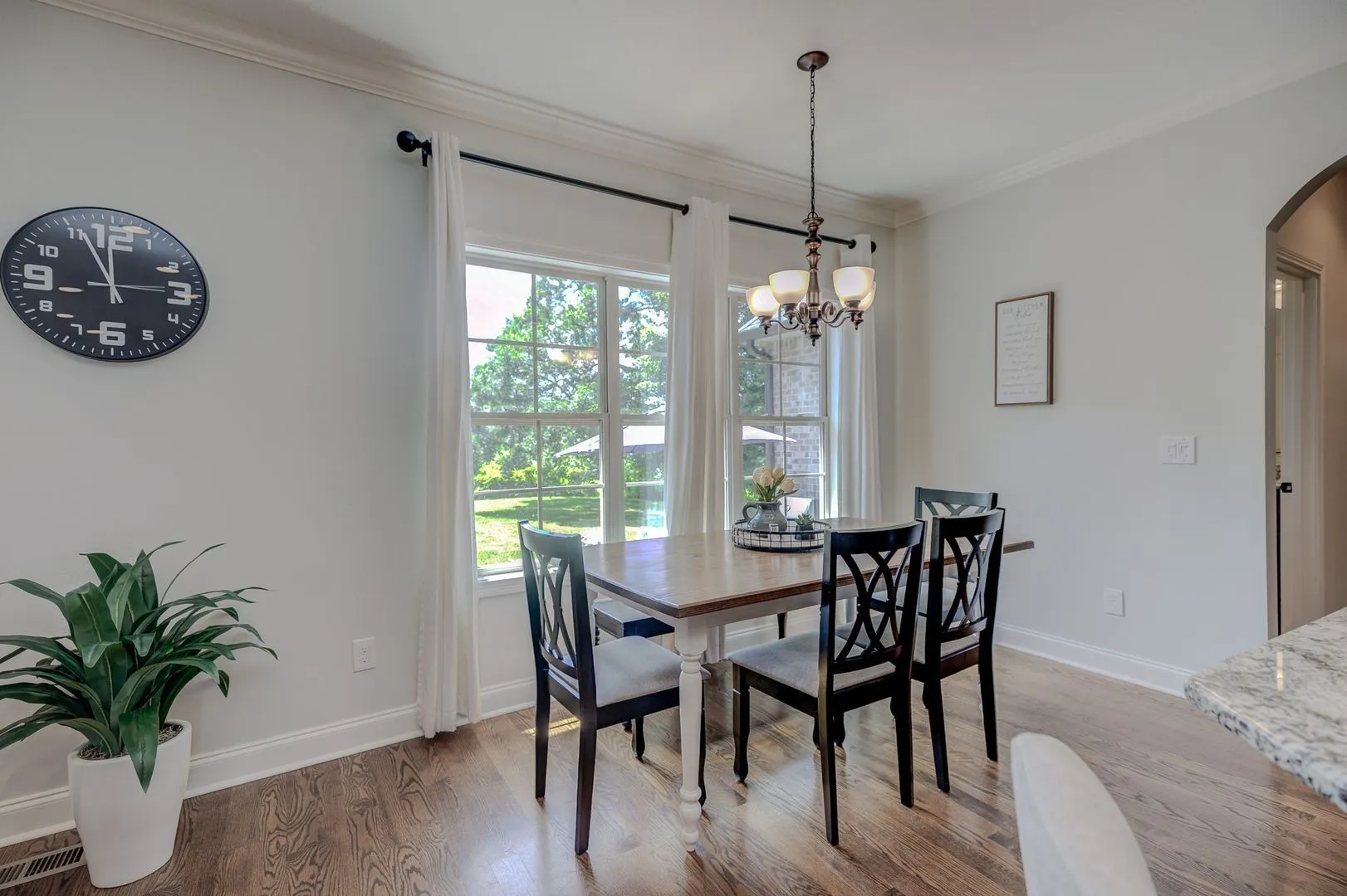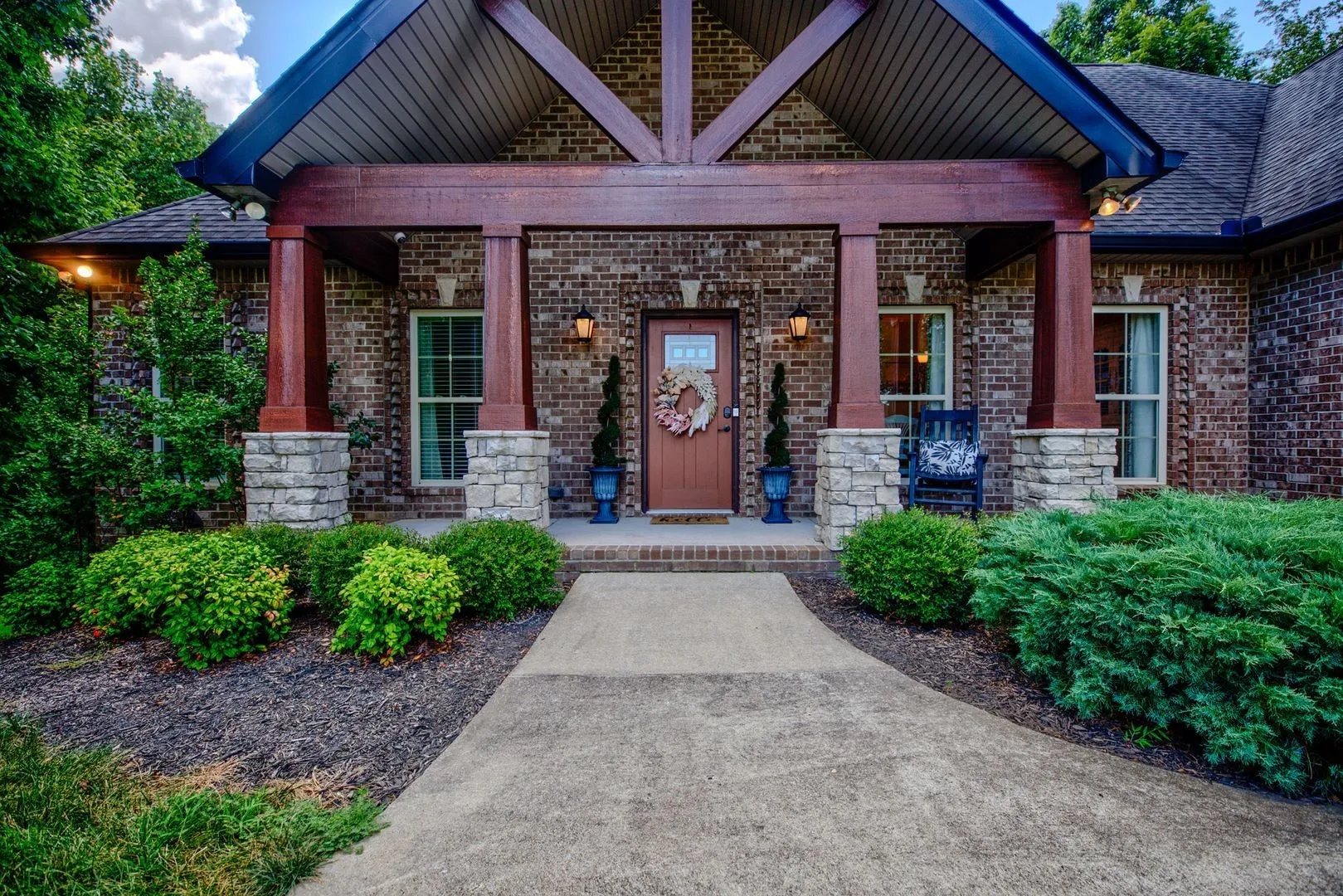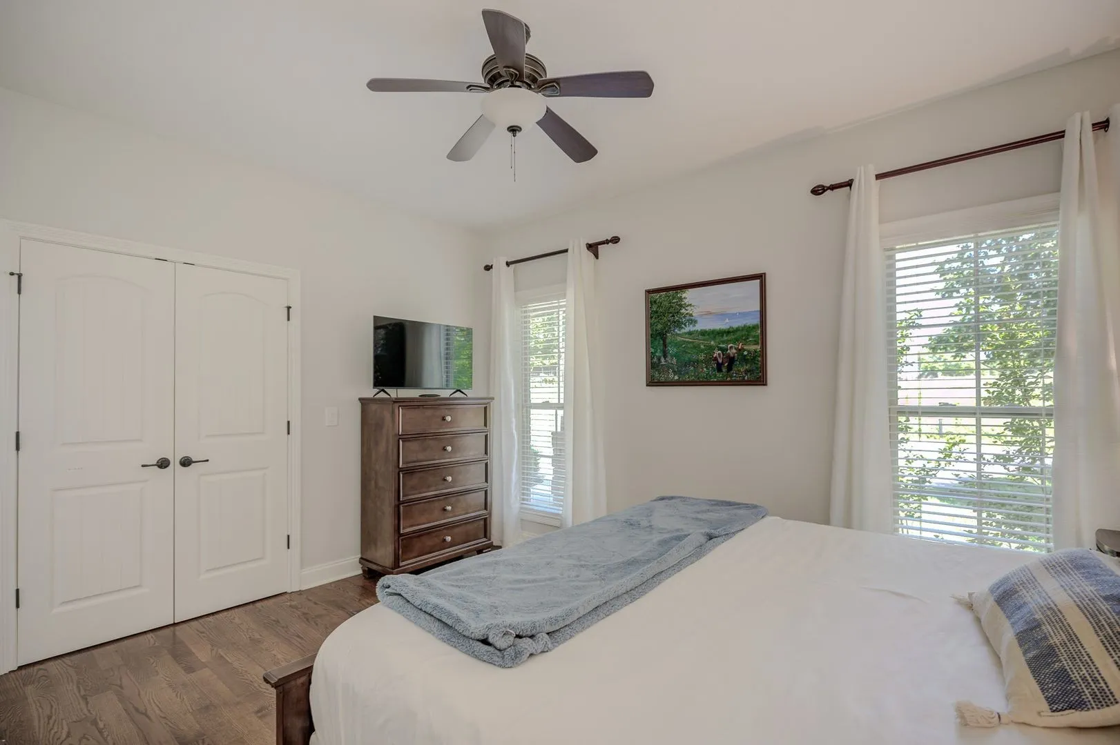 Sunrise on Sequoia!! This serene property is newly furnished with plush linens and everything you need to make this home* Mostly 1 level with an open concept, solid wood cabinets & granite, plus stainless appliances. Enjoy the outdoors from the comfort of your covered back patio & open patio. Backs up to rolling fields, where the deer, turkey & wildlife visit daily. Lush primary bedroom features a king-sized bed, Big nightstands with charging stations & resting chairs* The private bath has a big tiled shower, soaking tub, double sink vanity & giant walk-in closet with custom closet organizer. You can watch the sunrise from bed daily. Sitting on the front porch the peaceful living contunies and you watch the horse roam on the land across the street. The split bedroom design has 2 guest rooms on the opposite side of the house with a king bed in one and a queen in the other. Open greatroom with gas logs and Giant TV, kitchen, formal dining room (table seats 10) & includes china & crystal, if you are fancy* Laundry room with washer/dryer and tons of cabinets above and a desk. Bonus room has a reading nook, game table and 2 daybeds which serve as a couch or trundle w/4 twin beds and linens. The house also comes with an attached garage, offering convenience and security, circle drive, loads of eves lights and so much more. Please note, the detached garage is owner storage are not included in the rental. Experience the best of Clarksville living in this beautiful home.