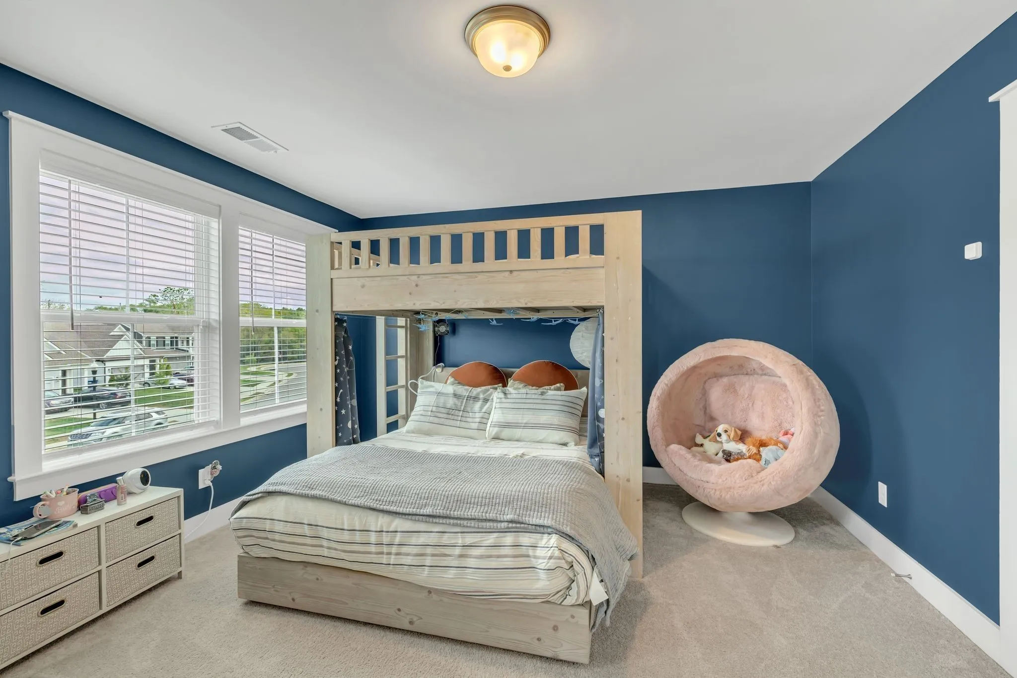 The main-level primary suite is a private sanctuary with custom wood shelving, a built-in dresser, and a mirrored hanging closet, offering a boutique-like experience. Upstairs, you’ll find three spacious bedrooms, all with walk-in closets, two full bathrooms, and a large bonus room perfect for a media space, home office, or playroom.\n