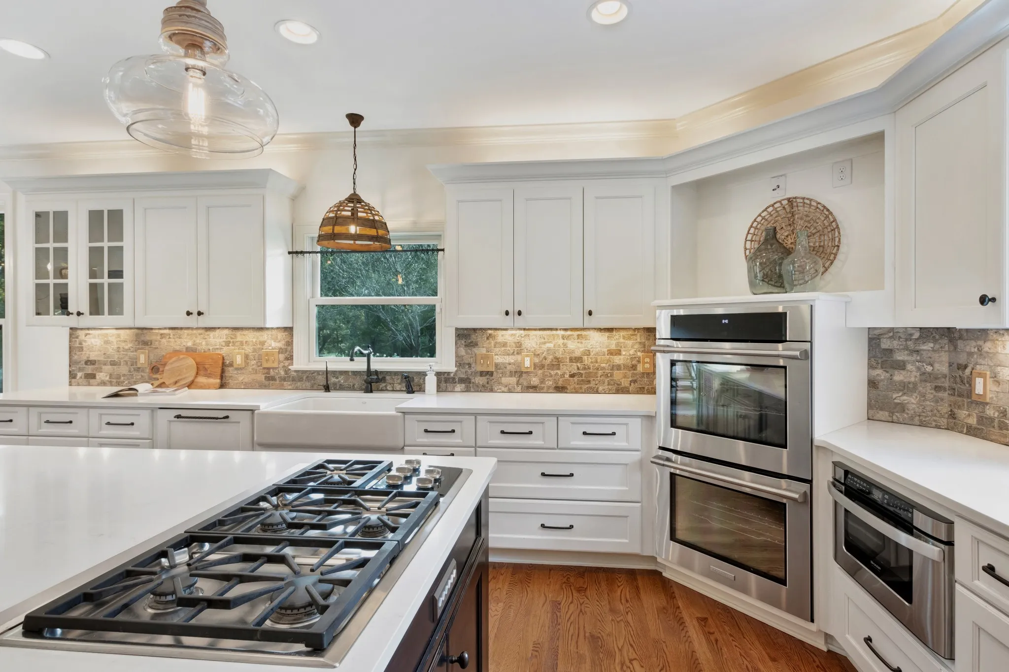 Tucked away in a peaceful setting surrounded by mature trees, this beautiful 4-bedroom, 3-bath home offers the perfect blend of privacy and convenience. You’ll feel worlds away while still being just minutes from shopping, dining, and top local amenities. Step inside to find an inviting open layout with two bedrooms on the main floor, including a spacious primary suite designed for comfort and relaxation. The gourmet kitchen, complete with sub zero refrigerator and nugget ice maker, and living areas flow seamlessly, creating an ideal space for entertaining or quiet evenings at home. Upstairs, you’ll find two additional bedrooms plus an extra-large bonus room—perfect for a home theater, playroom, or hobby space. The three-car garage provides plenty of room for vehicles, storage, or weekend projects. Outside, enjoy your own private retreat surrounded by nature—perfect for morning coffee, evening gatherings, or simply unwinding in your own wooded escape. If you’re looking for a home that offers space, flexibility, and privacy without sacrificing convenience, this one checks all the boxes. Additional room is the dining area in the kitchen. Staging Items Do Not Convey. NO HOA!