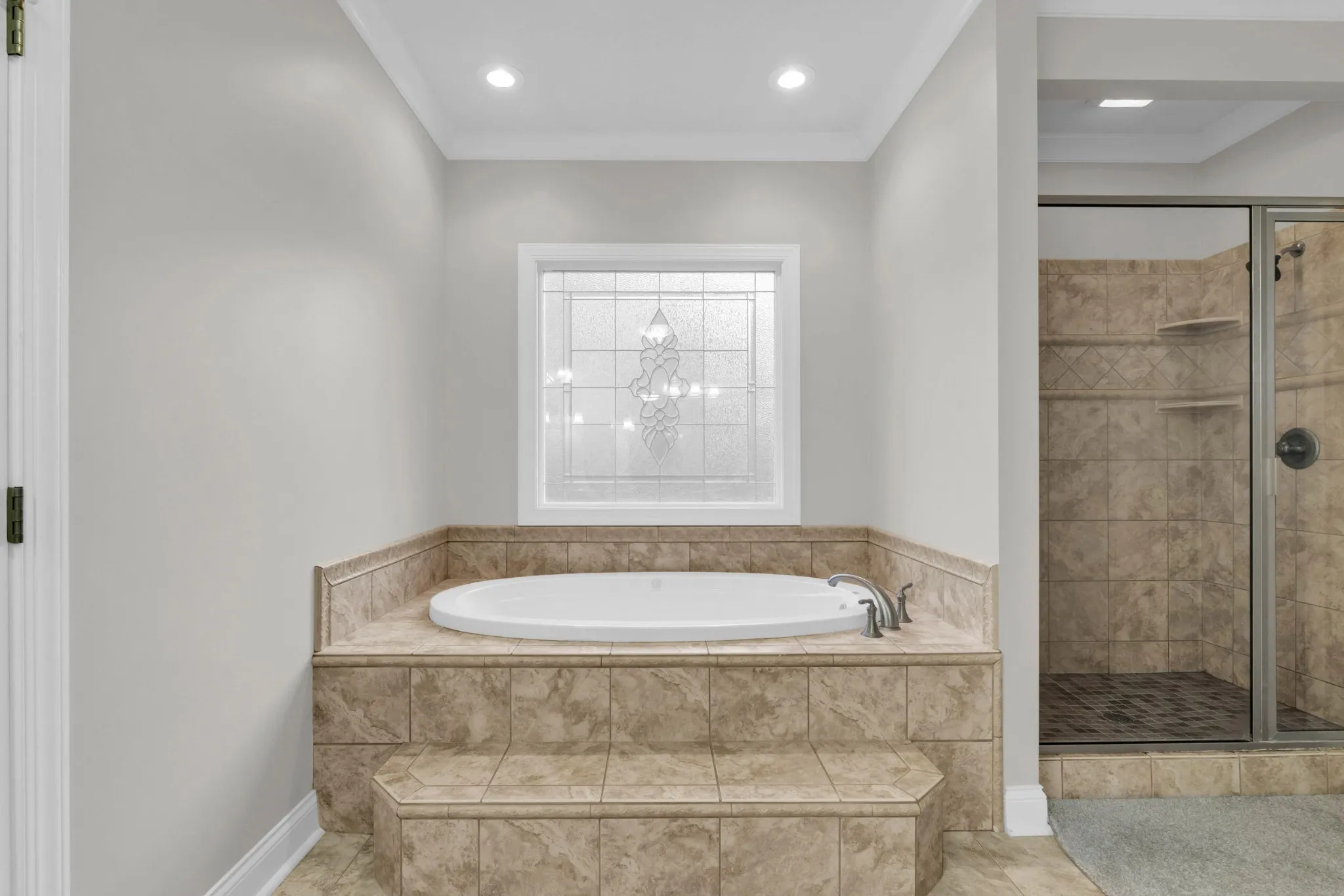 The luxurious main-level primary suite includes two large walk-in closets and a spa-like en suite with tiled jetted tub, tiled shower, and custom cherry double vanities with granite countertops.\r\n
