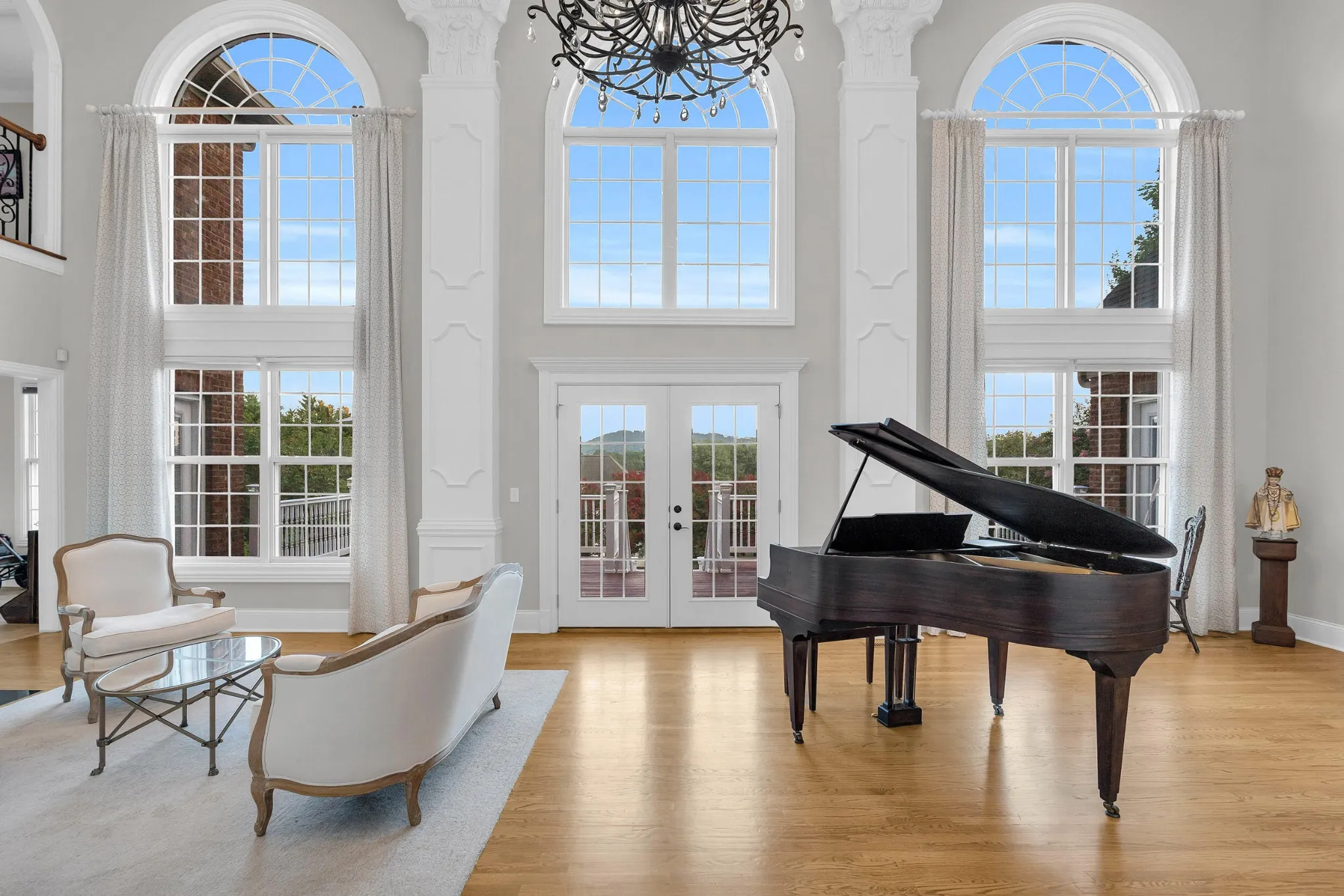 Step into elegance in this stunning brick and stone home built by Weller Construction, located in one of the area's most desirable golf communities. A grand two-story foyer welcomes you, leading into an impressive hall with soaring ceilings, elegant columns, and a beautiful fireplace flanked by two balconies above.\r\n