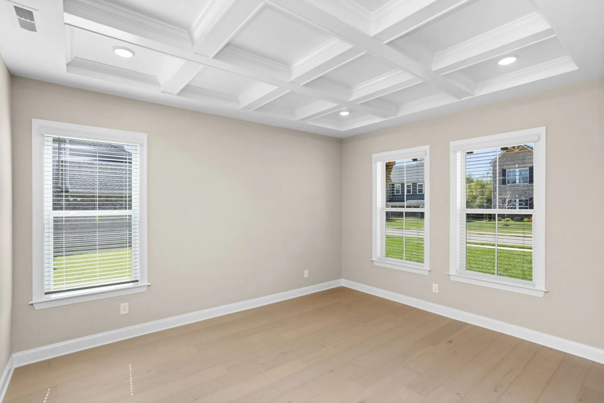 Upstairs, the luxurious primary suite is a true retreat, complete with a beamed ceiling, sitting area, and a spa-inspired bathroom. Enjoy a soaking tub, walk-in shower, dual vanities, and an expansive walk-in closet designed to impress. Three additional bedrooms and two more bathrooms offer ample space for family, guests, or a home office setup.