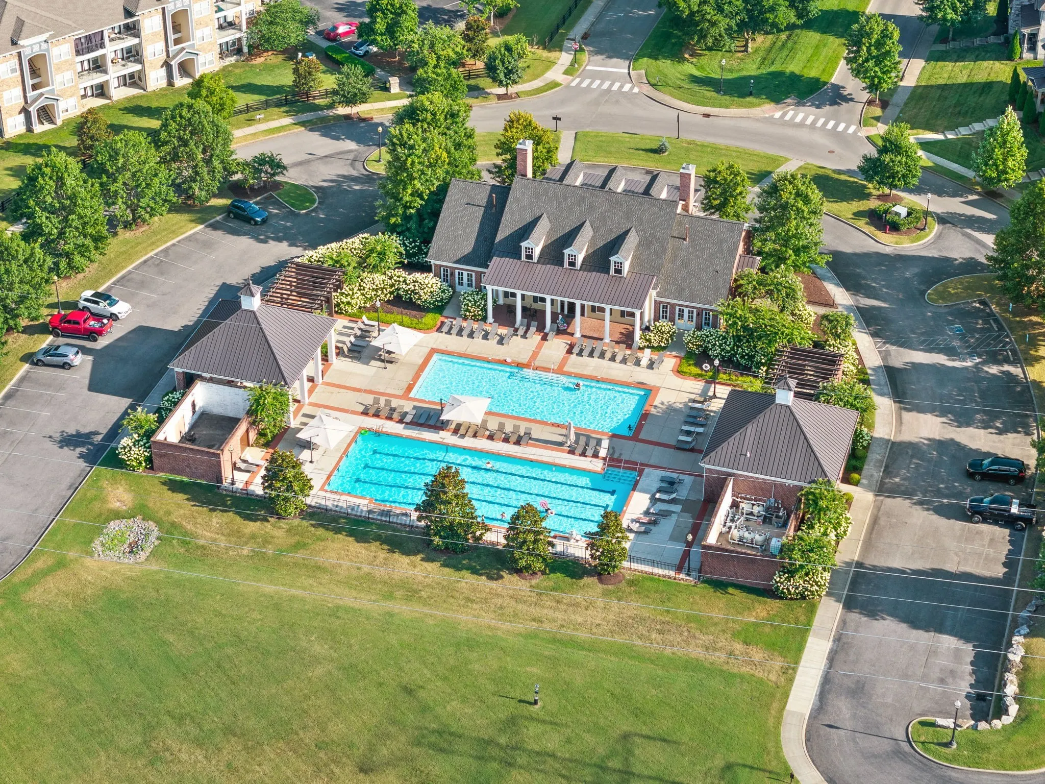 Residents love the resort-style amenities: two pools, a clubhouse, a fitness center, sidewalks, and a warm, neighborly atmosphere.