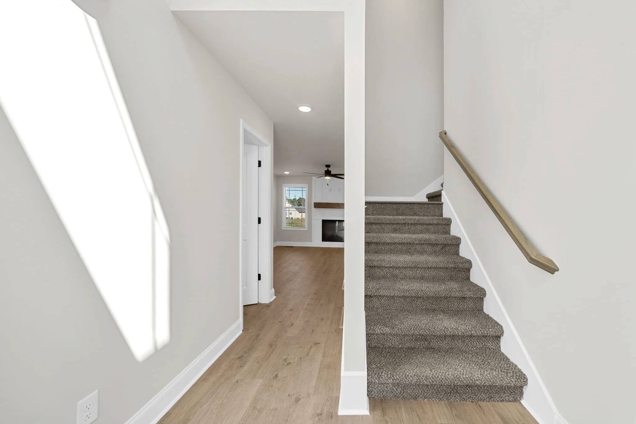 Three bedrooms & bonus room w/open floor plan! A foyer greets you as you enter. Kitchen w/eat in area, pantry, stainless steel appliances and beautiful bark color cabinetry w/ white island. Upstairs you have 3 bedrooms, laundry, two full baths & bonus room to enjoy. Primary suite has a trey ceiling, large walk in closet and private bath – tile shower. Covered deck, privacy fence and covered front entryway. Subdivision has underground utilities, sidewalks & street lights & NO HOA!. Close to FTC, Clarksville Regional Airport, schools and shopping. Home is under construction – Photos represent a previously built home. Colors and selections will vary.