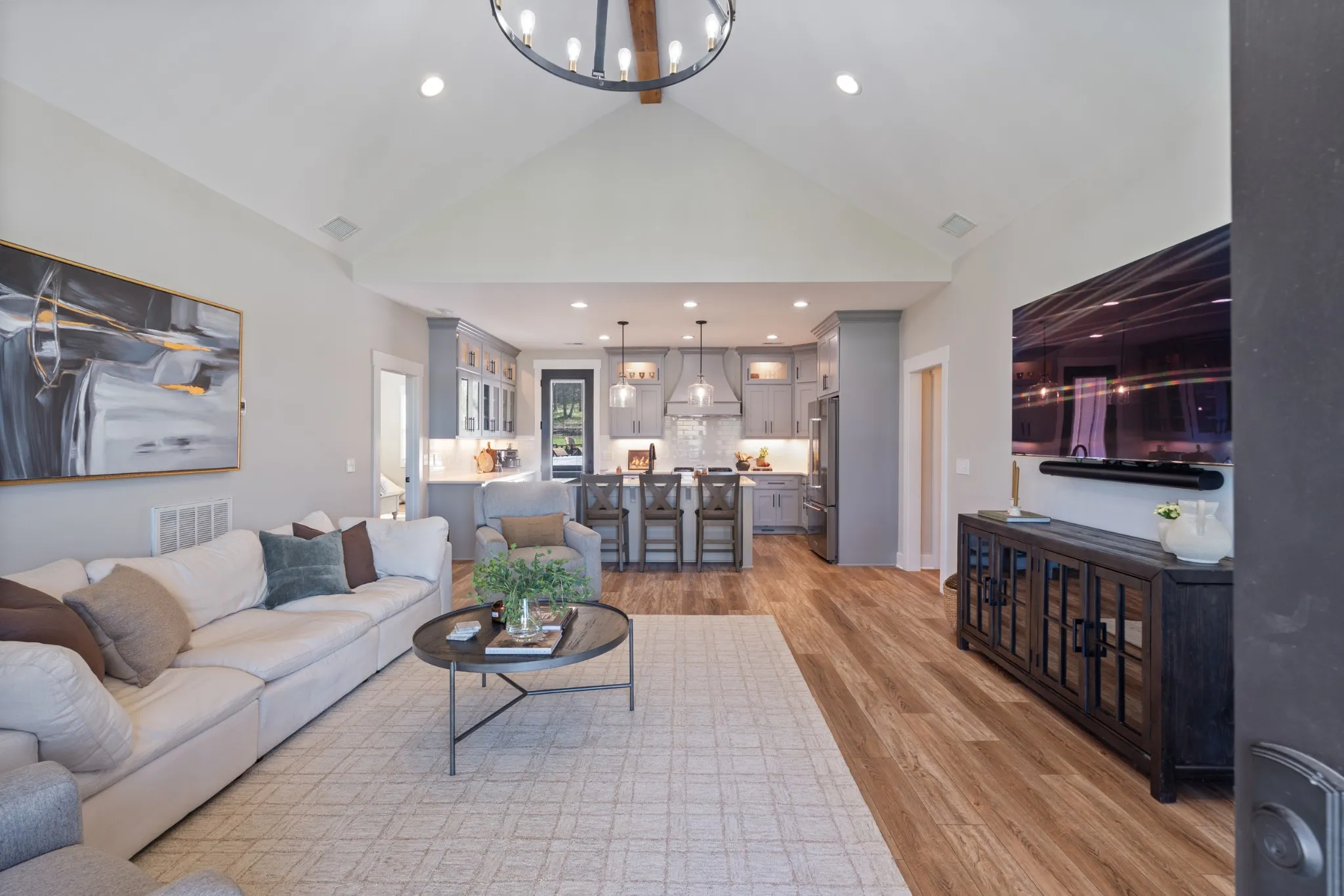 A rare 10-acre retreat along the Rutherford/Williamson County line, this 2 year old custom-built Craftsman home blends privacy, space, and modern country living, with quick access to I-840 and easy commutes to Nashville, Franklin, and Murfreesboro. Inside the vaulted great room welcomes you with soaring ceilings and designer lighting, creating an inviting space for everyday living and entertaining.The open-concept kitchen is the heart of the home, featuring an oversized island, custom cabinetry with glass-front display storage, stainless steel appliances, and thoughtful custom details. The home offers 3 bedrooms, 2 baths including an expansive 18×30 recreation room ideal for movie nights, game days. The primary suite is a true retreat, highlighted by a spa-inspired bath with a 10-foot vanity and an oversized walk-in shower. A private flex room just off the primary bedroom; complete with built-in bookcases and a sliding accent door, works beautifully as a home office, sitting room, dressing area, or nursery. Storage is exceptional with three walk-in closets, including a 16×19 custom closet with built-in shelving and a center island. A split-bedroom layout enhances privacy, with the third bedroom positioned near the rec room; perfect for guests or a teen suite. Outdoor living shines with an outdoor kitchen, 42×15 heated saltwater pool, built-in jacuzzi, stamped concrete decking, and stone accents. Entertain under the covered patio and pavilion with a stained wood ceiling and chandelier, relax by the outdoor gas fireplace, or gather around the fire pit on cool evenings. The fully heated and cooled 2,600 sq. ft. barndominium-style shop features stamped concrete floors, four 12’ doors, custom cabinetry, concealed storage, and space for vehicles, boats, or RVs. A 18×30 bonus room offers flexibility for a home gym, hobby room, or studio, while a separate walk-up bar from the backyard makes it an ideal entertaining space. Designed for comfort, functionality, and lifestyle.