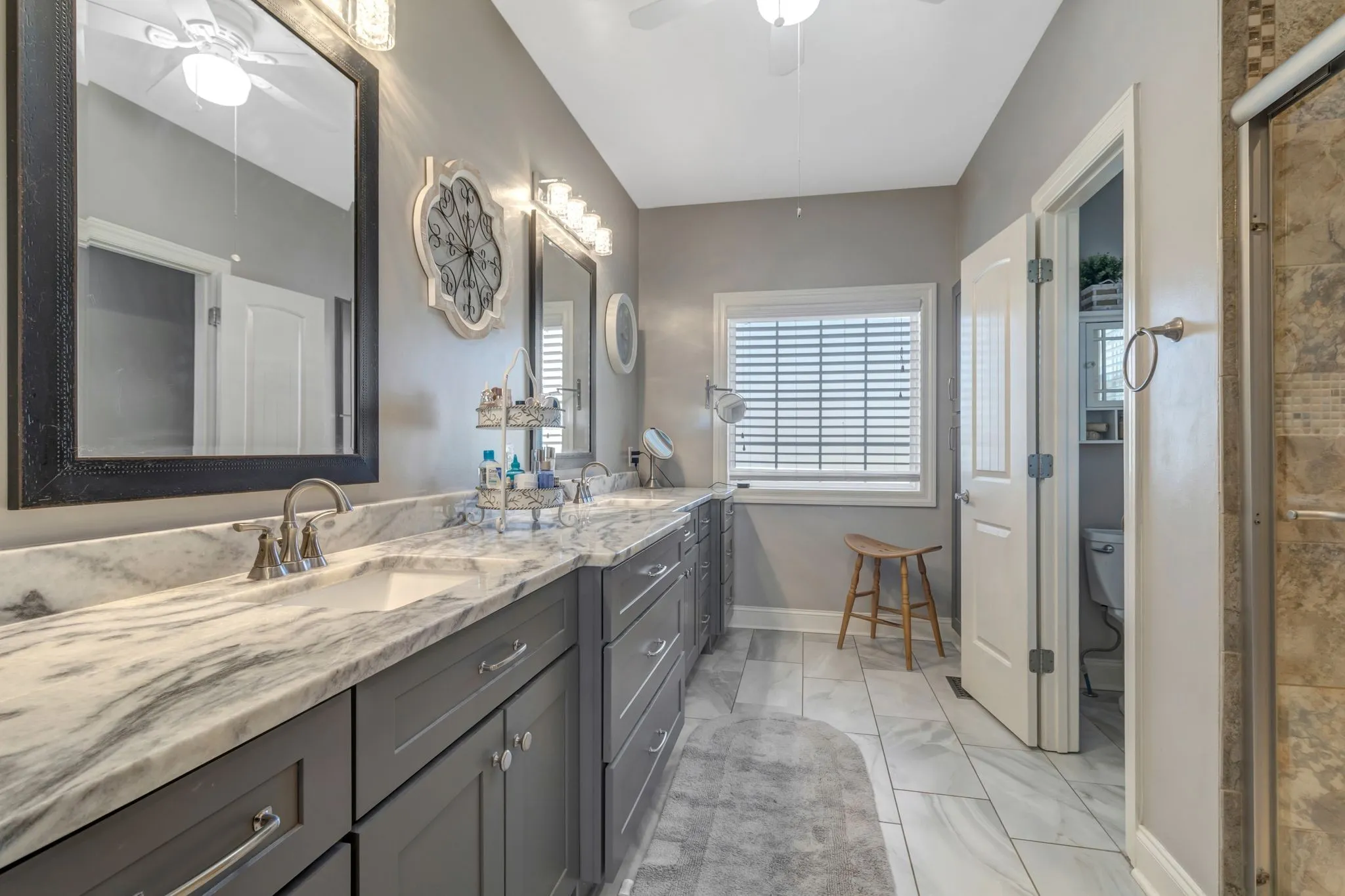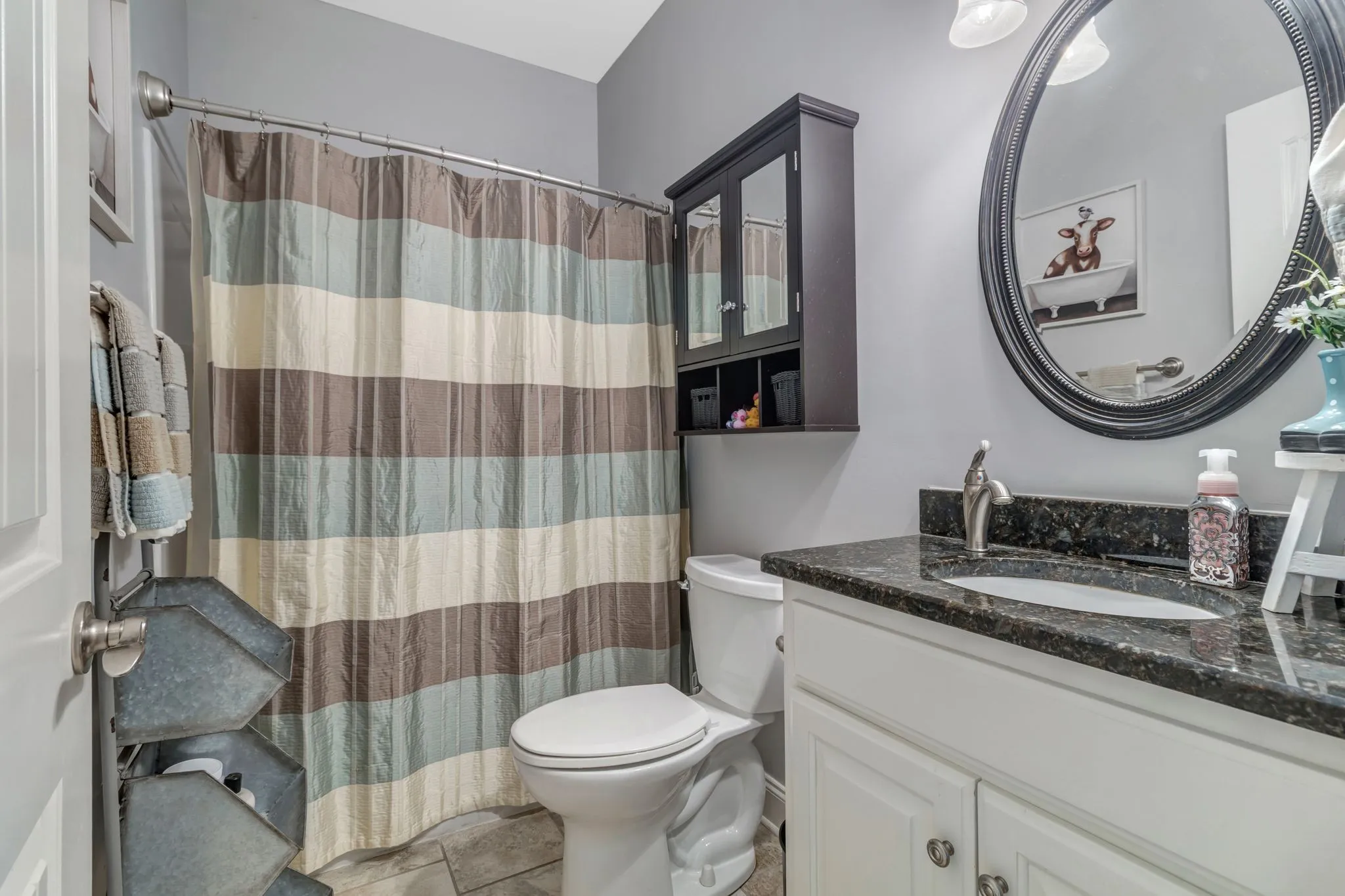 The primary bath has been updated with an upgraded vanity and stylish finishes. Bonus room upstairs converted to a private suite with full bath. Baths feature granite counters and tile finishes. Carpet installed three years ago.