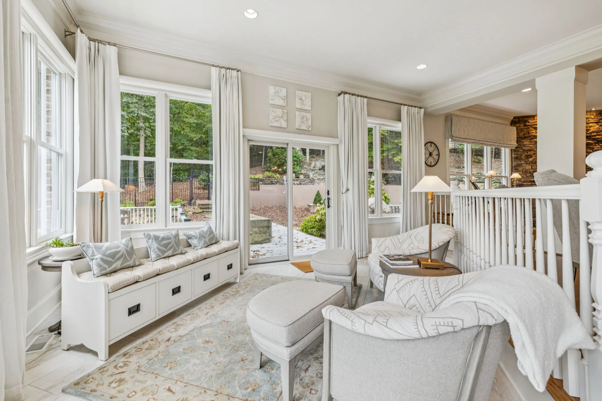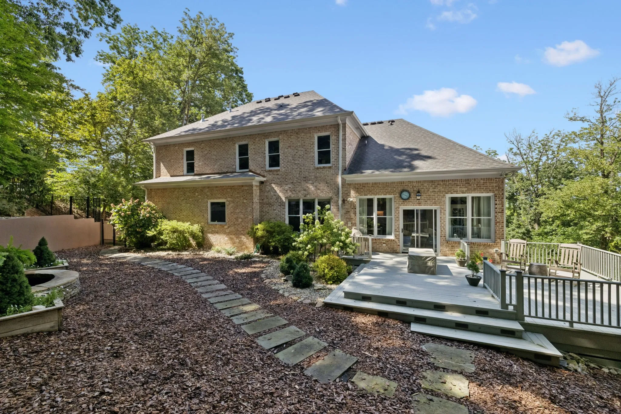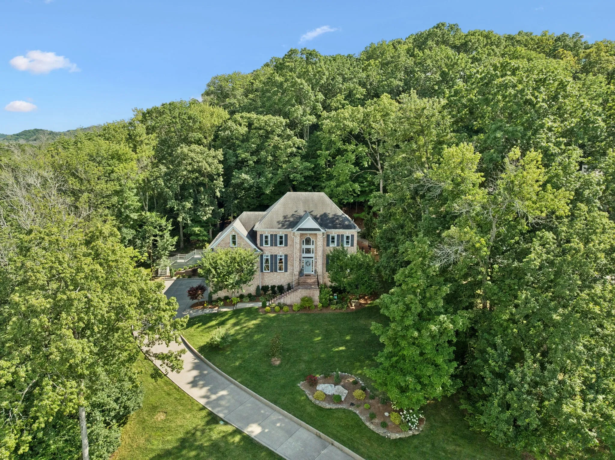 +"PublicRemarks": "Nestled in the scenic hills of Brentwood, this custom-built home sits on one of the community’s most peaceful and picturesque lots. Thoughtfully designed for both everyday comfort and elegant entertaining, the residence features rich hardwood floors, exquisite millwork, soaring ceilings, and generously sized rooms throughout. The main level offers a seamless blend of formal and casual living spaces, including elegant living and dining rooms, a light-filled morning room, and an open-concept family room that flows effortlessly into the kitchen and breakfast area. The luxurious primary suite on the main floor is a private retreat, complete with a spa-like bath featuring a zero-entry shower, a soaking tub, and a spacious custom walk-in closet. Upstairs, you’ll find four large secondary bedrooms, each with its own en-suite vanity area, providing plenty of privacy and comfort for family and guests. The basement level is just as refined, featuring a cozy sitting area, a private office, and a spacious recreation room that can be customized to fit your lifestyle—whether as a media room, pub-style lounge, or additional entertainment space. Step outside to your own backyard sanctuary—lush landscaping, a spacious deck, and the soothing sounds of a built-in waterfall create a tranquil setting perfect for relaxation or outdoor gatherings. Exterior lighting and a full irrigation system enhance the beauty and ease of maintenance. Additionally, a whole-house backup generator provides added peace of mind, ensuring uninterrupted comfort and convenience in any season. Ideally located just minutes from top-rated schools, shopping, and business centers—with easy access to Green Hills, Belle Meade, and all that Nashville has to offer—this remarkable home combines luxurious living with exceptional convenience."