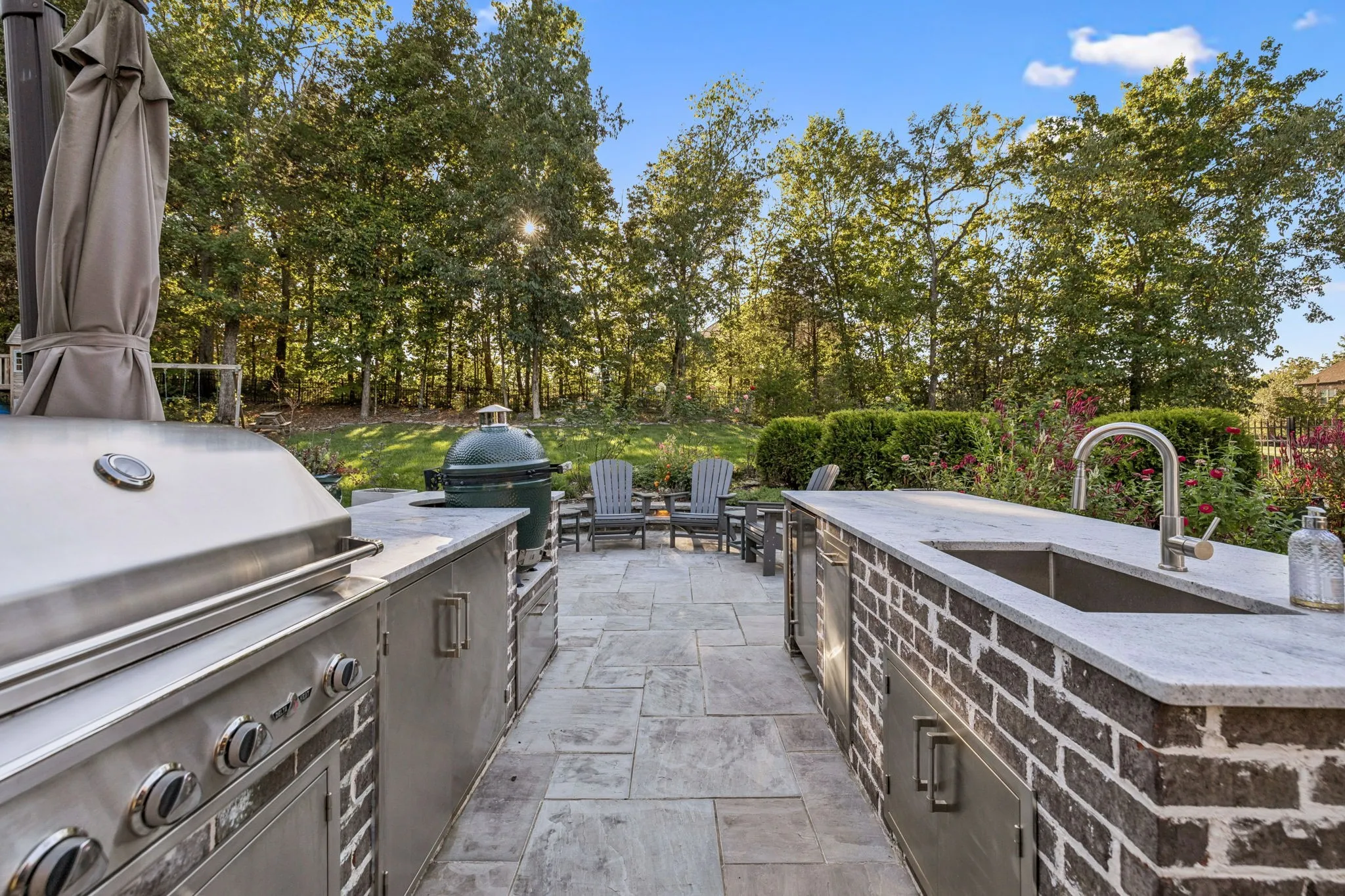 Step outside and you’ll see why this home is an entertainer’s dream. The retractable screened porch, outdoor kitchen, and stone fireplace create the perfect setting for relaxing evenings or weekend get-togethers. The fenced backyard is private and beautifully landscaped, complete with irrigation and landscape lighting to keep it looking its best.
