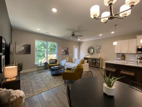 Step into elegance with towering 8-foot front doors, designed to make a lasting impression on you and your guests. From the moment you set foot on the premium Shaw LVP flooring, you’ll sense the unique quality and style that sets this townhome apart. The kitchen is thoughtfully crafted with upgraded cabinetry, modern hardware, strategic lighting, and high-end stainless steel appliances, complemented by a stylish tile backsplash—everything you need, with ample storage to match. The spacious great room opens to a private, fenced-in patio, perfect for relaxation or entertaining. Washer and dryer are included!