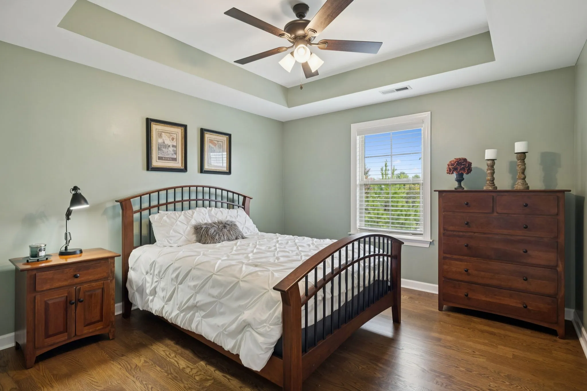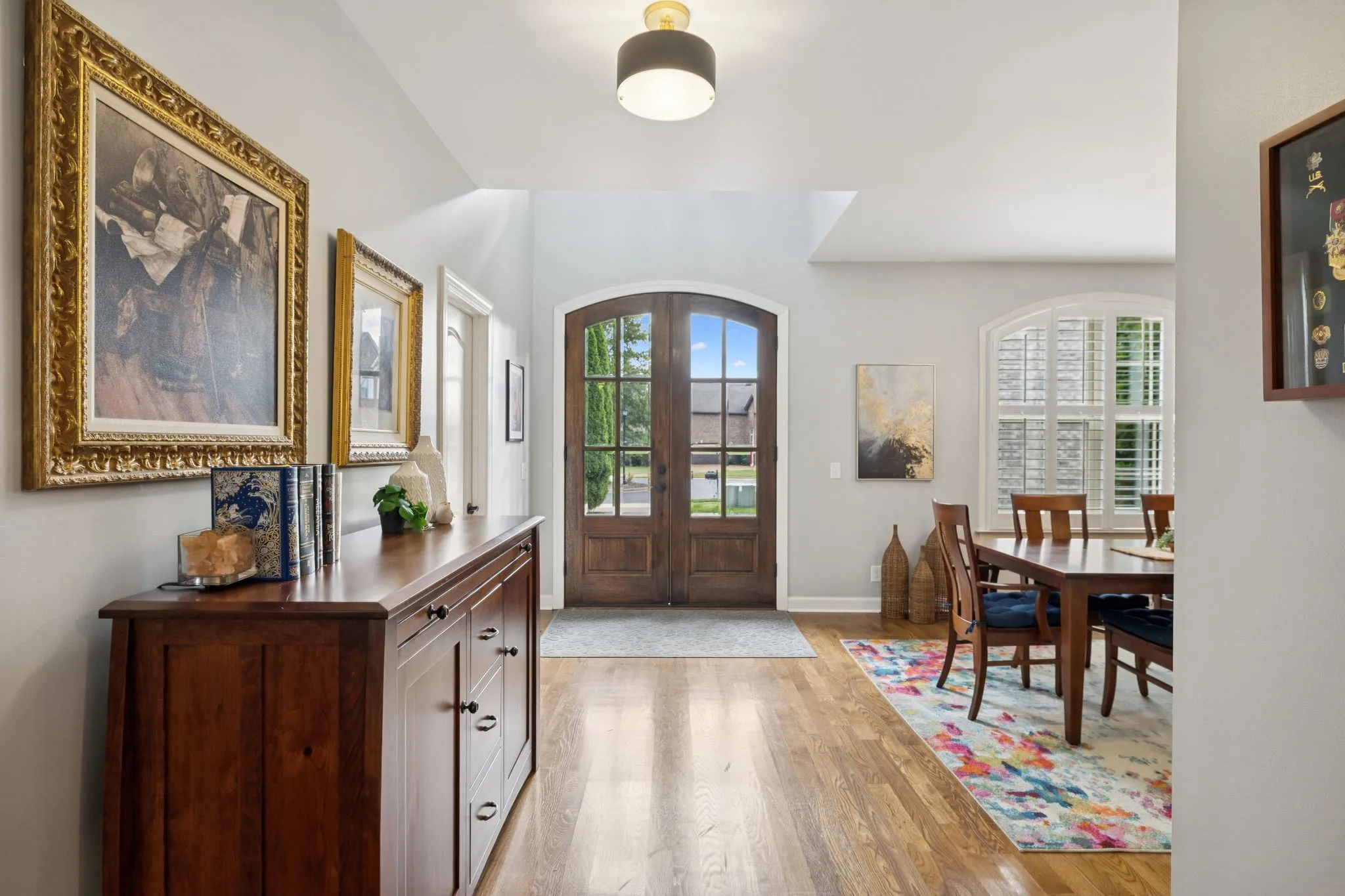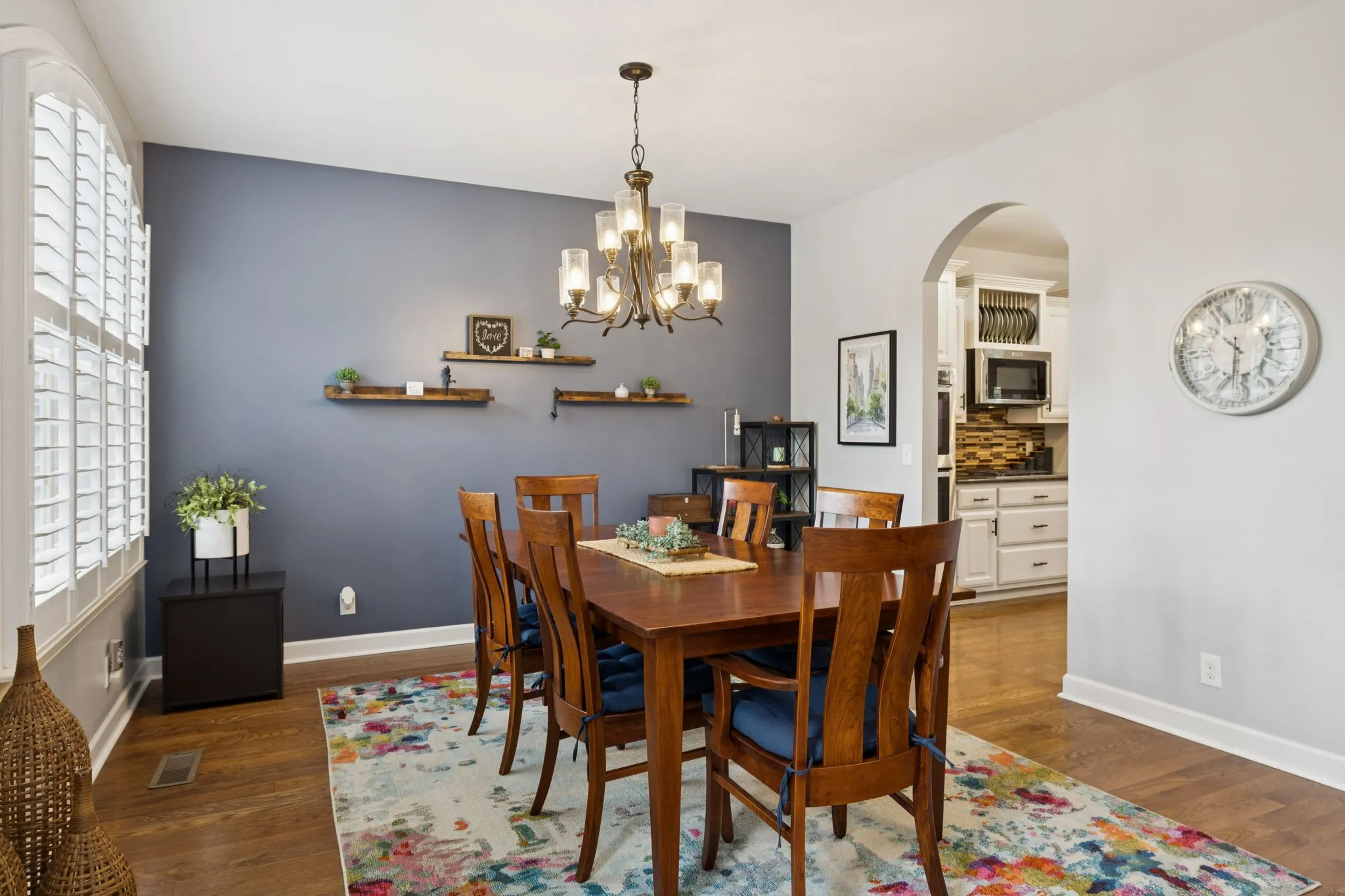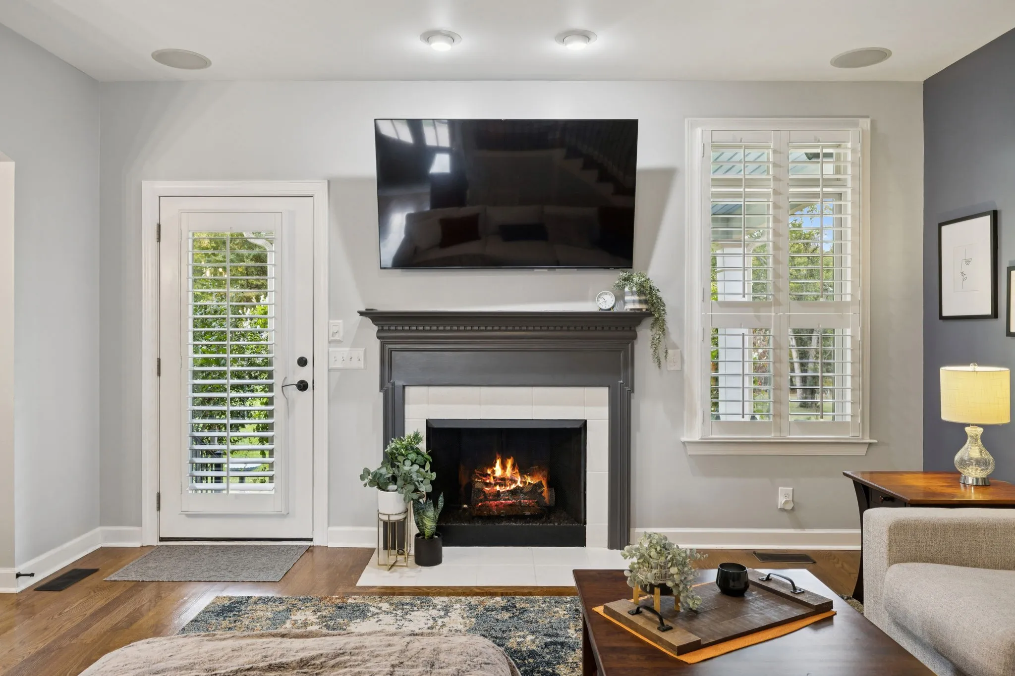 Inside, you will find hardwood floors throughout & no carpet. Fresh paint, new lighting & bath fixtures, and plantation shutters create a bright and inviting interior. The foyer opens to a formal dining room & a spacious great room w/gas log fireplace & access to the covered patio and outdoor living. Surround sound is installed throughout the home, and a main-level half bath adds convenience.