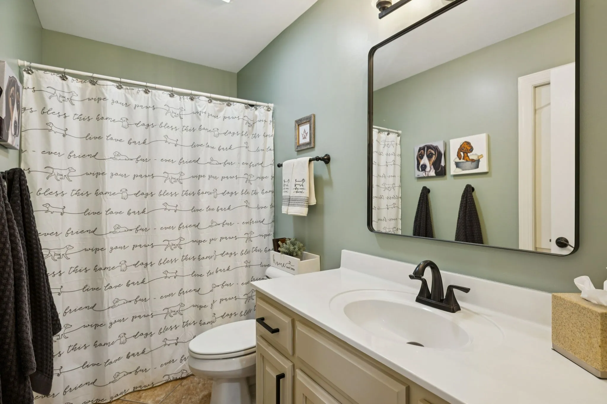 The main level primary suite offers a private retreat with updated sinks, mirrors, and fixtures, separate tub and shower, along with generous closet space. Upstairs are 4 additional bedrooms, 2 baths, and a large bonus room that connects to one bedroom through a shared bathroom pocket door, perfect for guests,in-laws, teens or home office