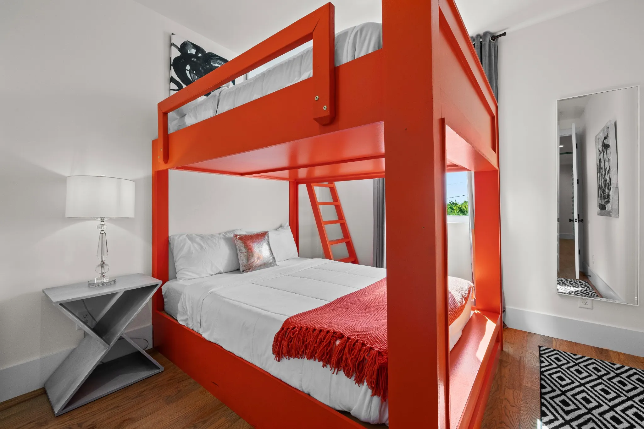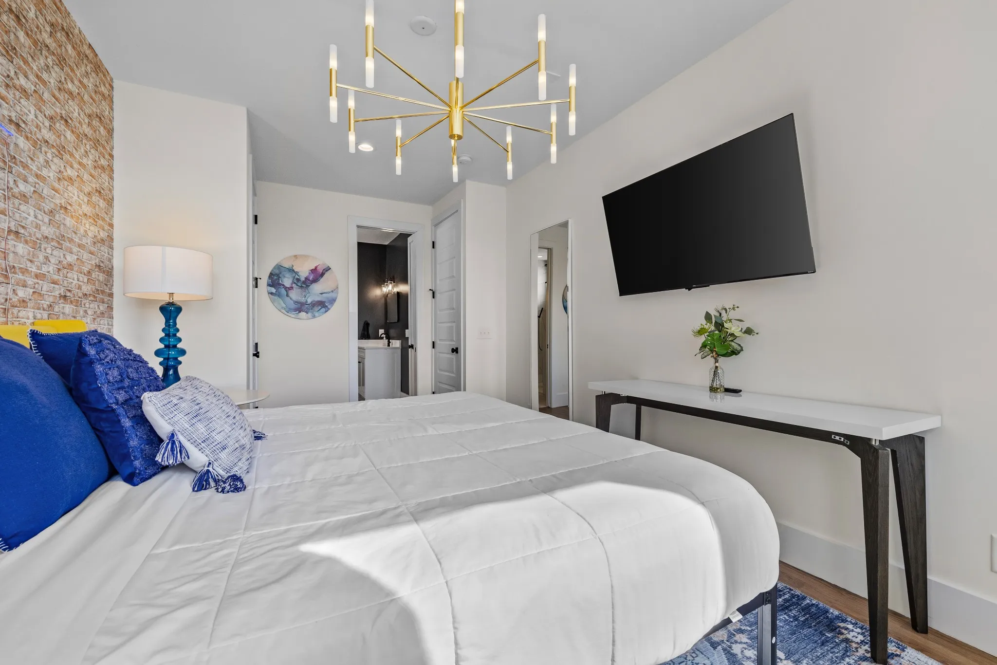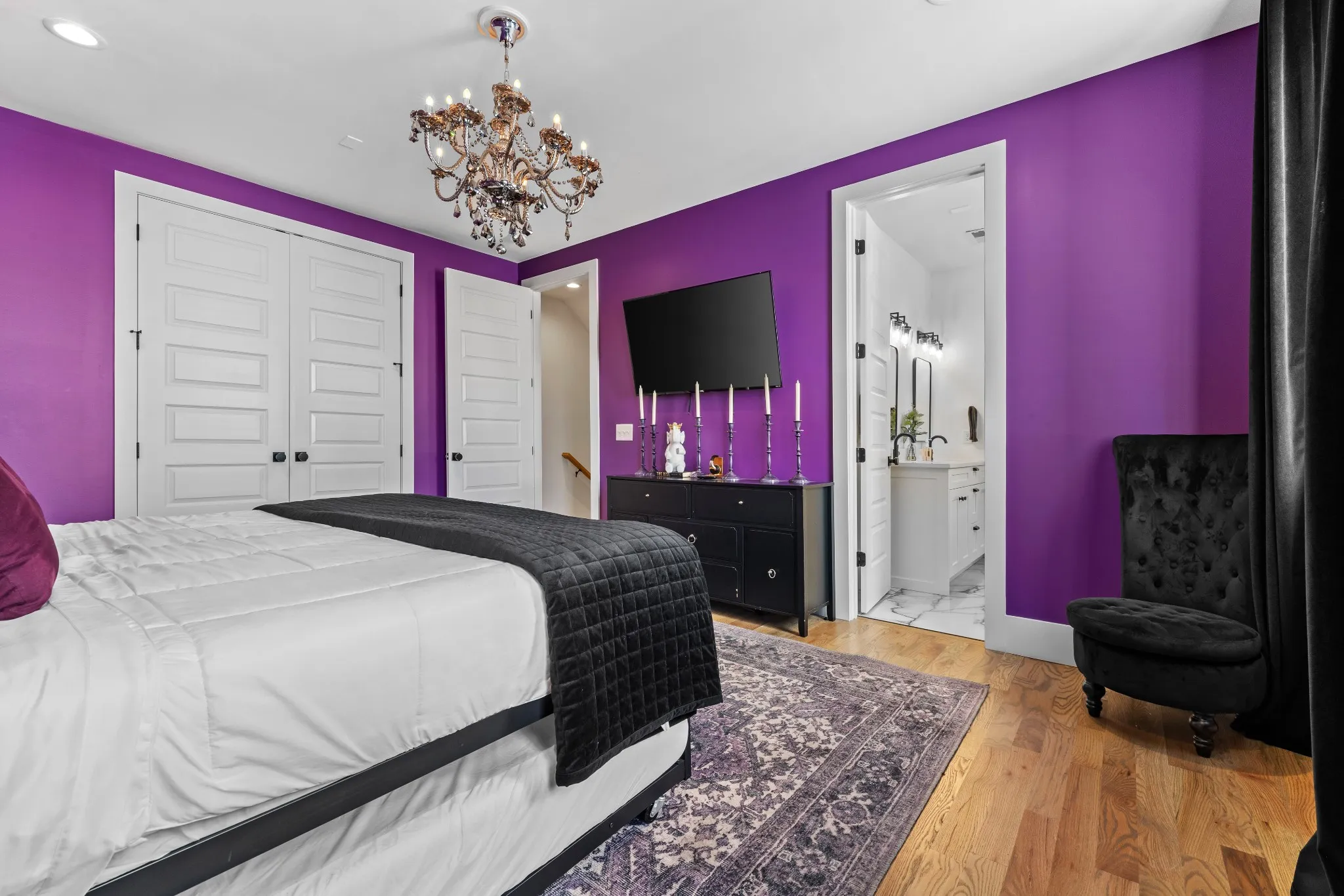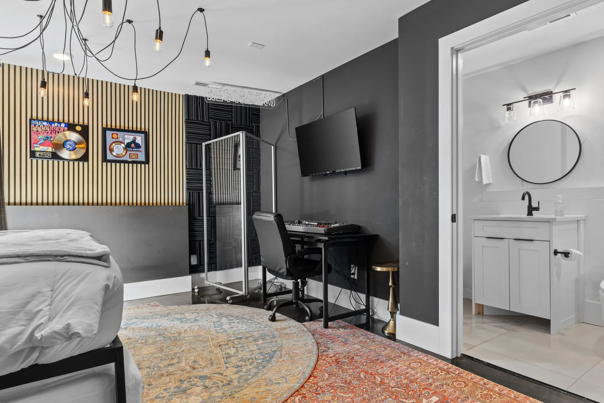 Inside, discover open living spaces accented with bold, music-inspired décor completed by renowned designer Brooke Hogan, and modern finishes that pay homage to the hip-hop and creative culture. The chef’s kitchen features quartz countertops, stainless-steel appliances, and custom cabinetry, opening seamlessly into a sunlit living area perfect for entertaining.