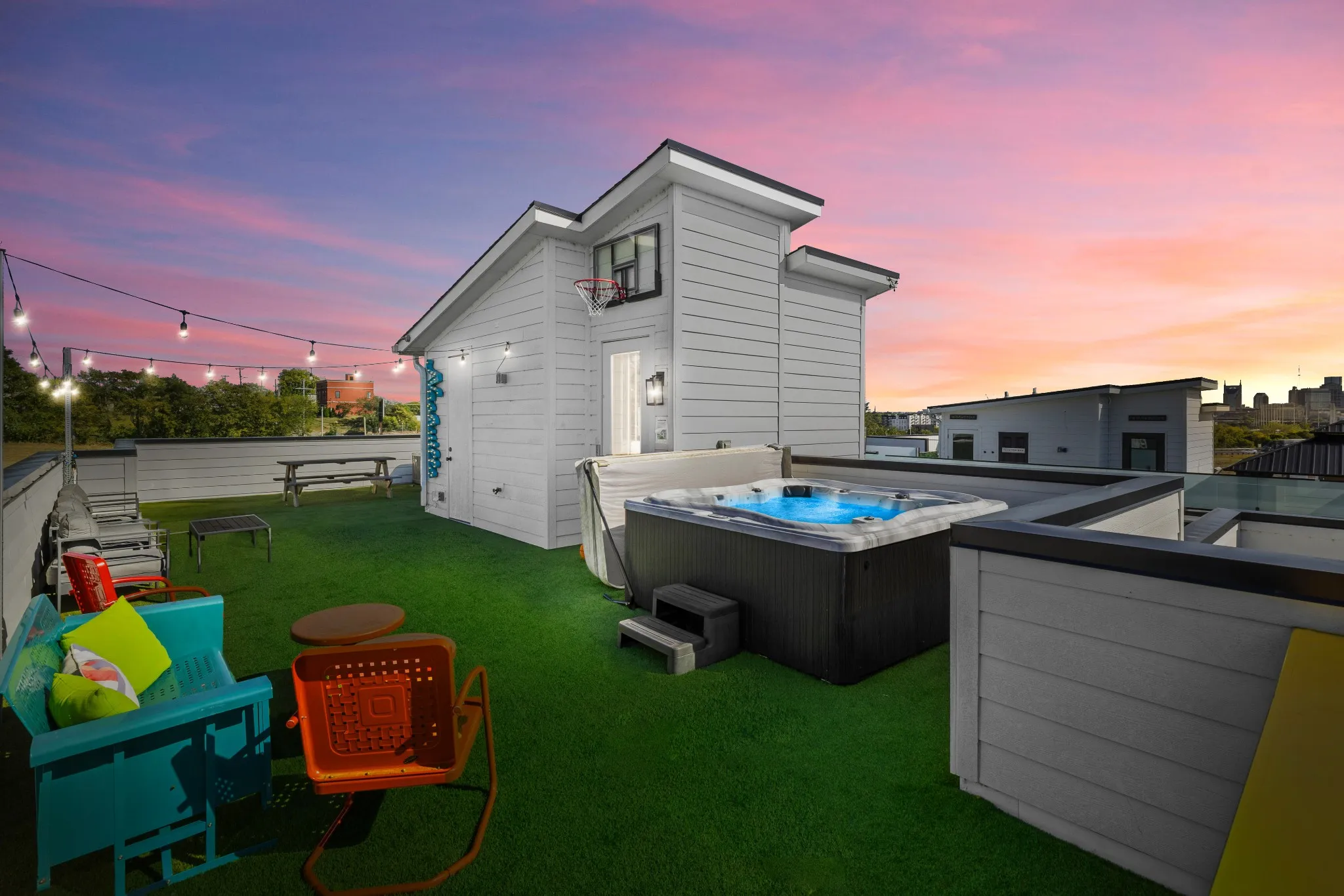 A private ELEVATOR connects all levels, leading up to the rooftop oasis — complete with a hot tub, lounge seating, and skyline views that set the stage for unforgettable nights. Designed for performance on every level, this home is a proven top earner in Nashville’s short-term rental market.