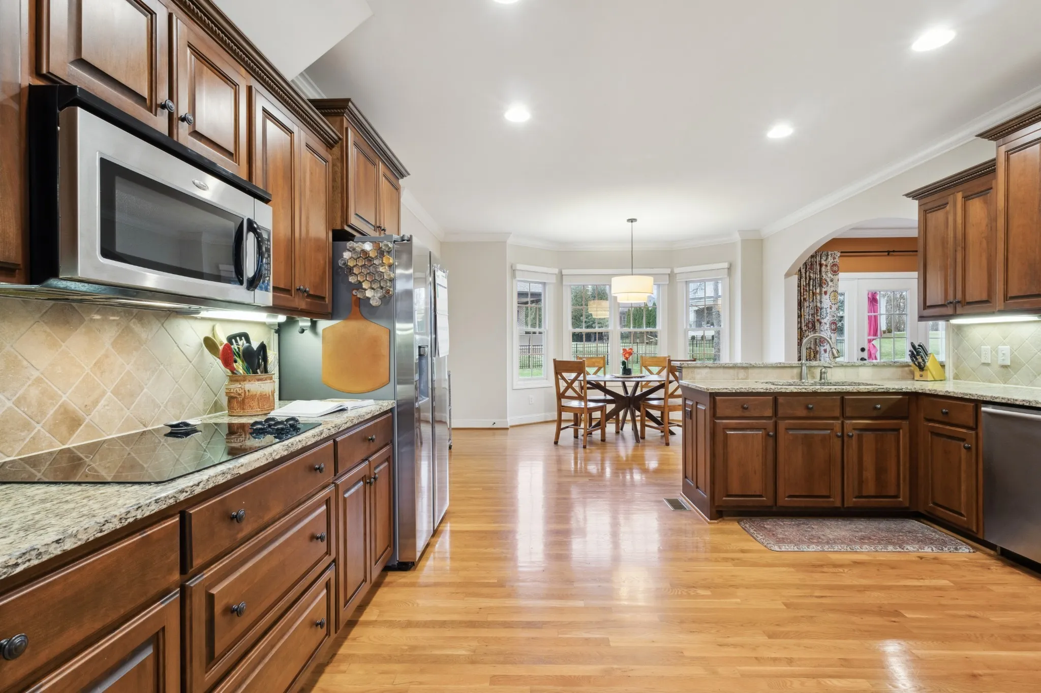 • Motorized blinds in the bay window of the eat-in kitchen\n