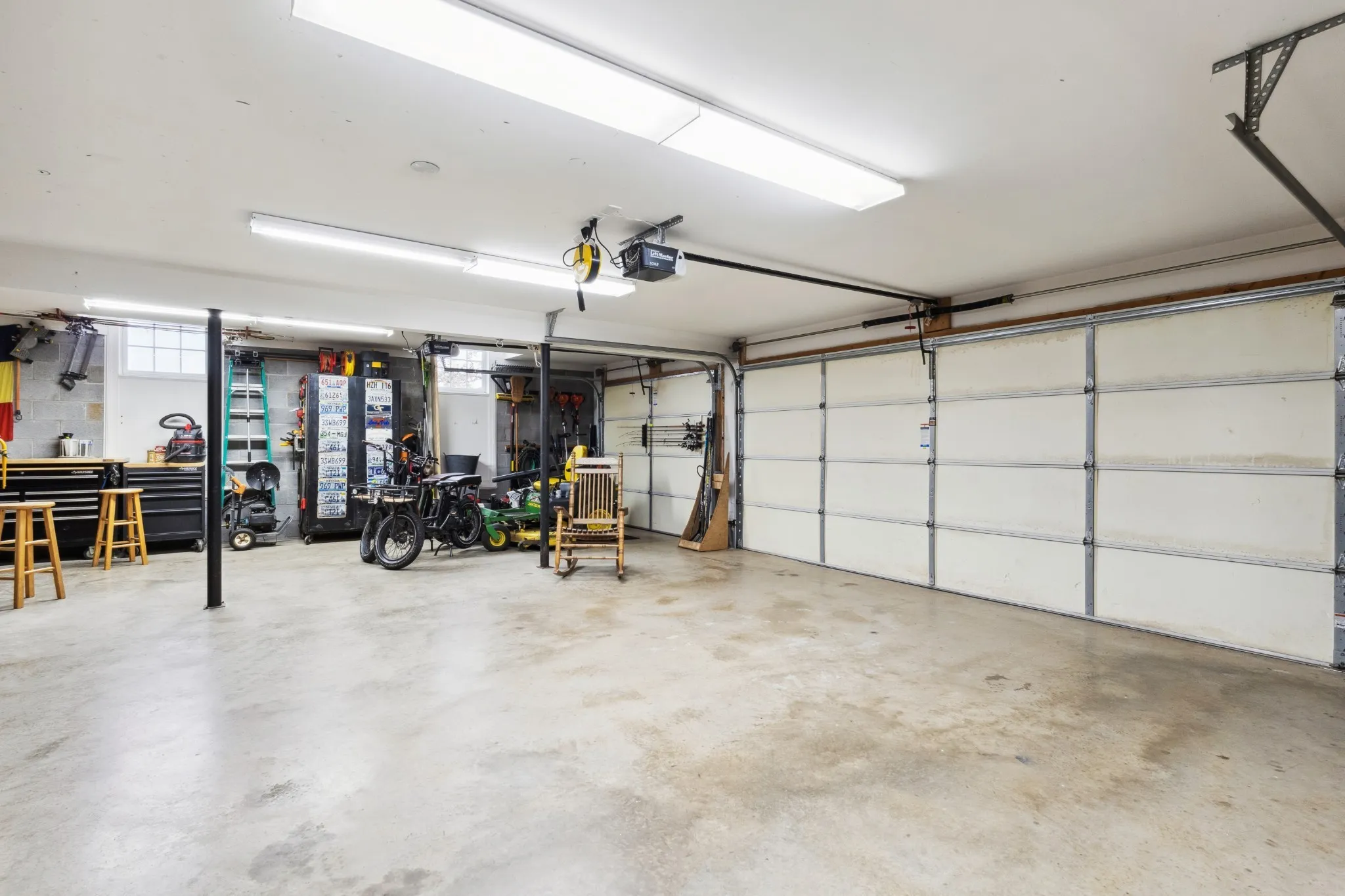 • Three-car garage with extended depth for storage or workshop needs\n