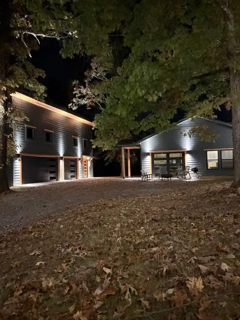 Custom Designed One Owner Home nestled just 17 minutes from Broadway~all one level living and easy to maintain~open concept floorplan and even a panoramic glass door that allows you to be one with nature all from the interior comfort of your home~vaulted ceilings in the living/dining/kitchen area~butcher block counters and farmhouse sink in kitchen~gorgeous tiled surround shower and double vanities in master bath~master suite with double closets~large laundry room~ 1550sqft FULLY HEAT AND COOLED detached garage with rec room above it architecturally designed to compliment the main home~Rockwool insullation used throughout the construction of the home~engineered trusts with 16′ center built with zip system~concrete slab reinforced with fiberglass~tankless water heater~high efficiency windows~all garage doors insulated~all bordered by a creek~MULTIPLE OFFERS HIGHEST AND BEST DUE BY 10/30 12 pm