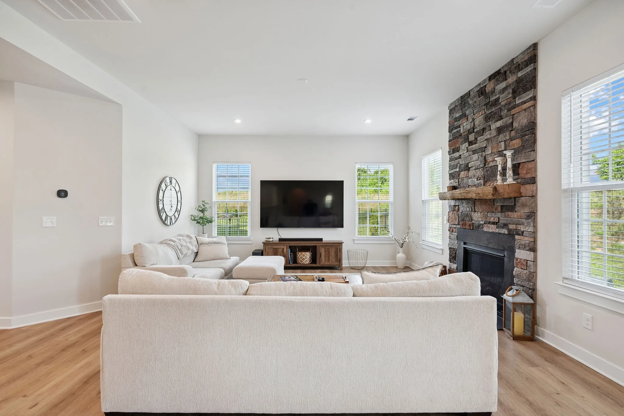 Enjoy the extra space with a versatile flex room and a charming morning room that fills with natural light — making the home feel even more spacious. The open-concept living area features recessed lighting throughout, a cozy gas fireplace, and a modern kitchen with stainless steel appliances, perfect for everyday living or entertaining.