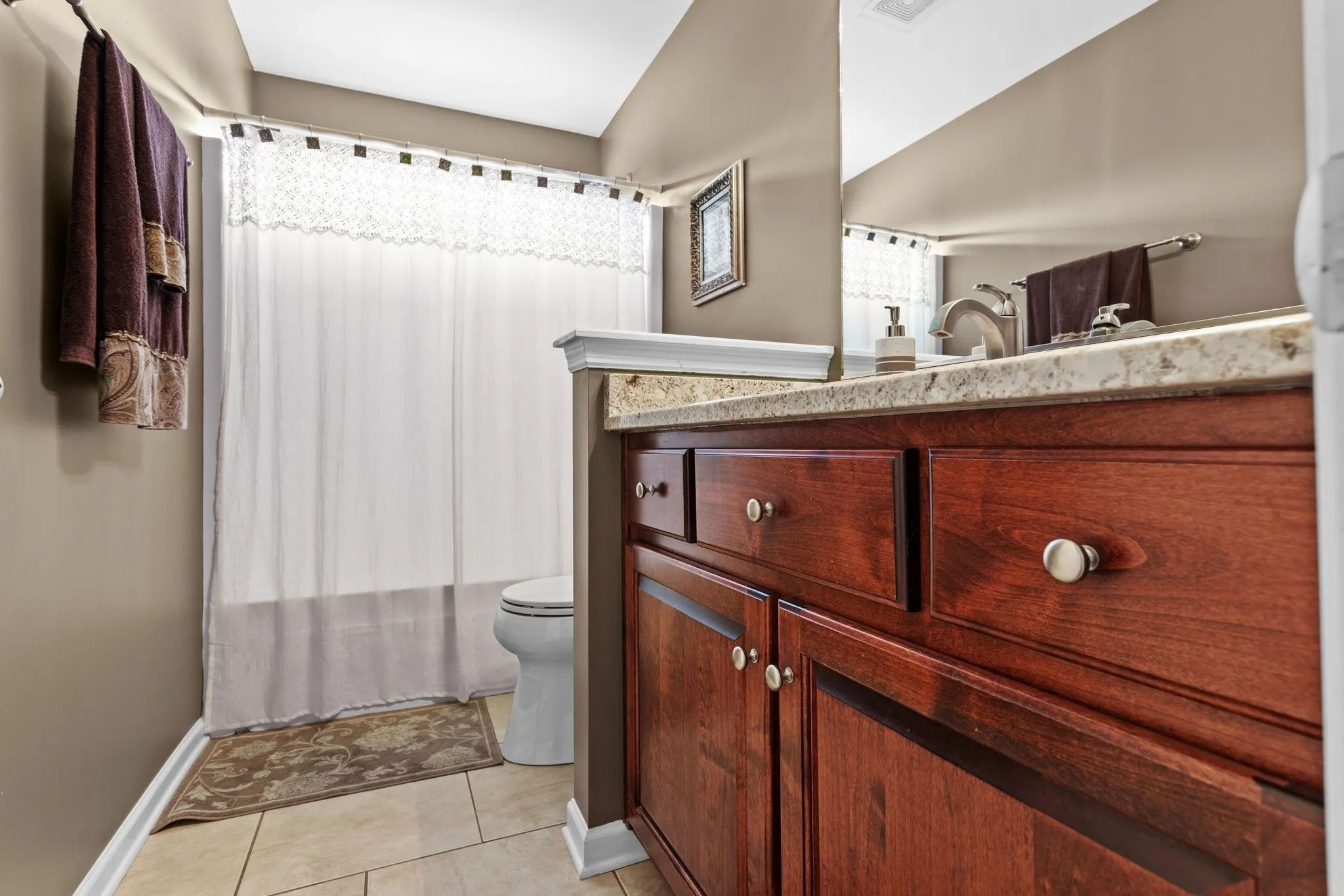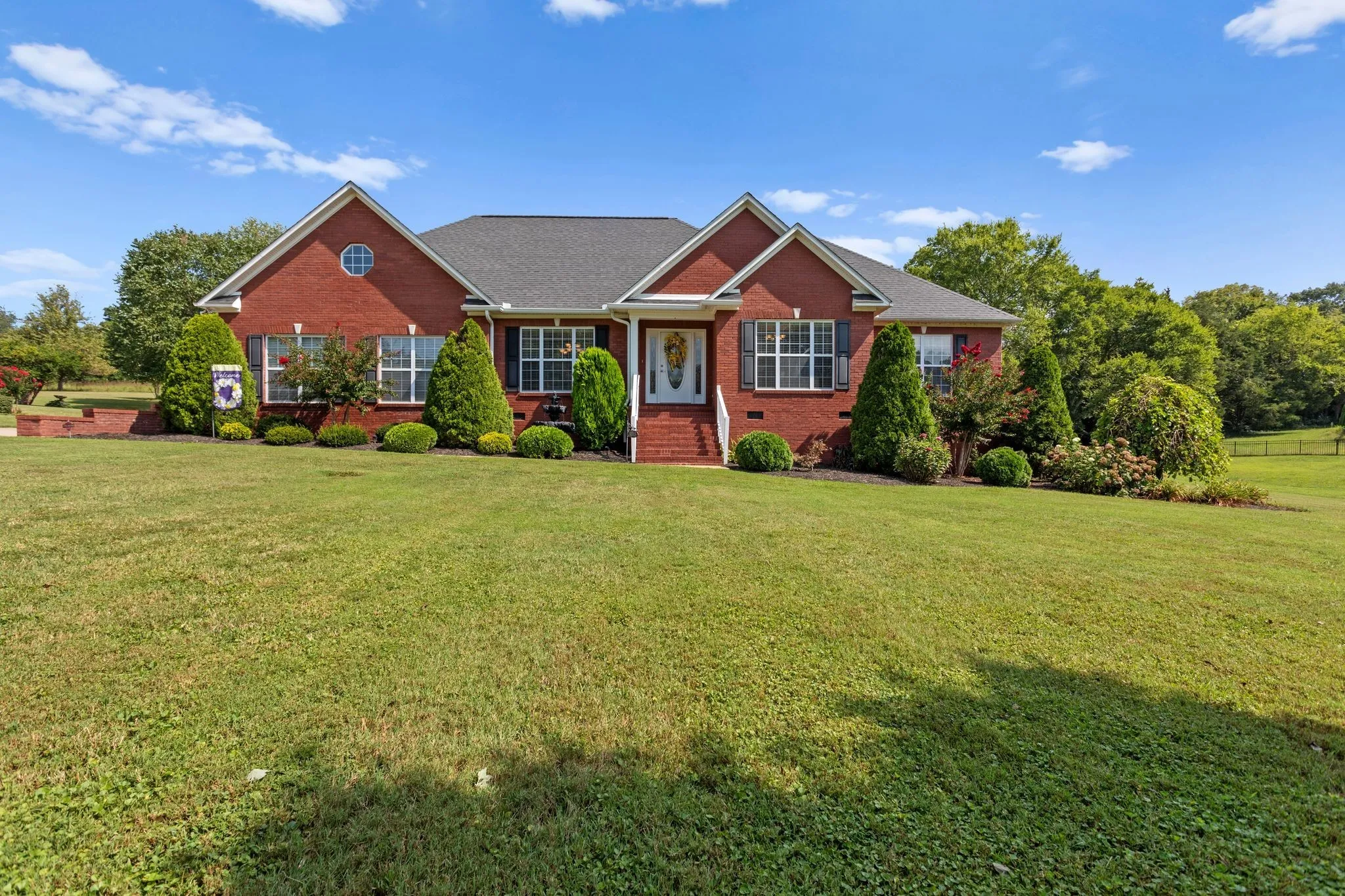 Exquisitely maintained and beautifully appointed, this 3-bedroom, 2-bath, 2,941 square foot all-brick ranch offers refined one-level living on a picturesque 1.19-acre lot. From the moment you arrive, the impeccable landscaping & classic curb appeal set the tone for what awaits inside. Step into soaring 12-foot ceilings in the main living area and kitchen space – perfect for both everyday comfort and entertaining. Enjoy the flexibility & versatility of formal living (or office) and dining spaces. The generous primary suite is a private retreat, while the king-sized bonus room opens up endless possibilities—whether you’re envisioning a home theater, gym, playroom, or additional workspace. Out back, a dreamy rear patio offers a peaceful setting to unwind or entertain during late summer evenings & crisp fall afternoons. A generous storage area with concrete pad underneath the home offers efficient housing for lawnmowers and other lawn equipment. Combining thoughtful design, exceptional maintenance, and a stunning lot, this home is truly a rare find. Set on a quiet cul de sac street, this home is also just a short 8-minute drive to I-65, making commuting to other areas quick and convenient.