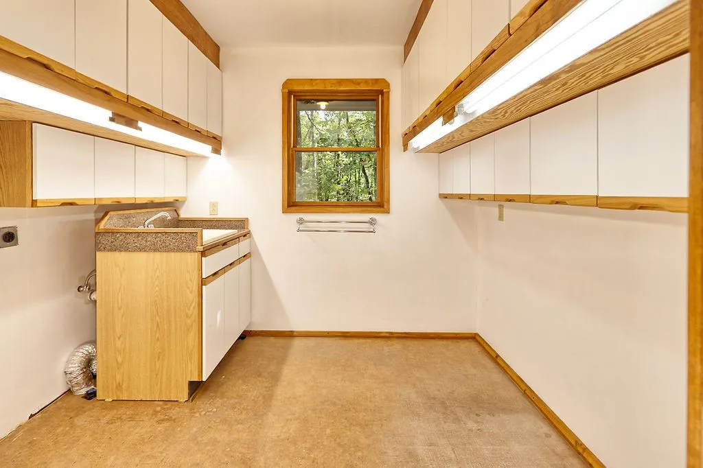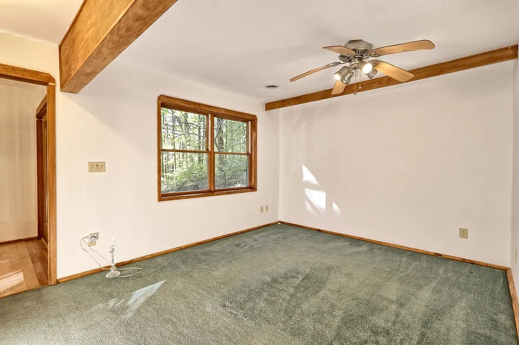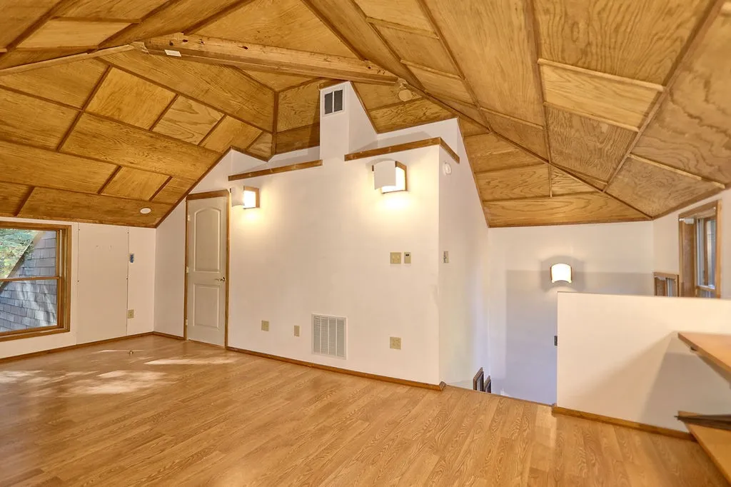 Outdoors, nature lovers will appreciate acres of woods for exploring and a variety of floral plantings ready to bloom come spring. And as a nod to its retro charm, the sellers are including an authentic 1970s orange cone fireplace—a true conversation piece!