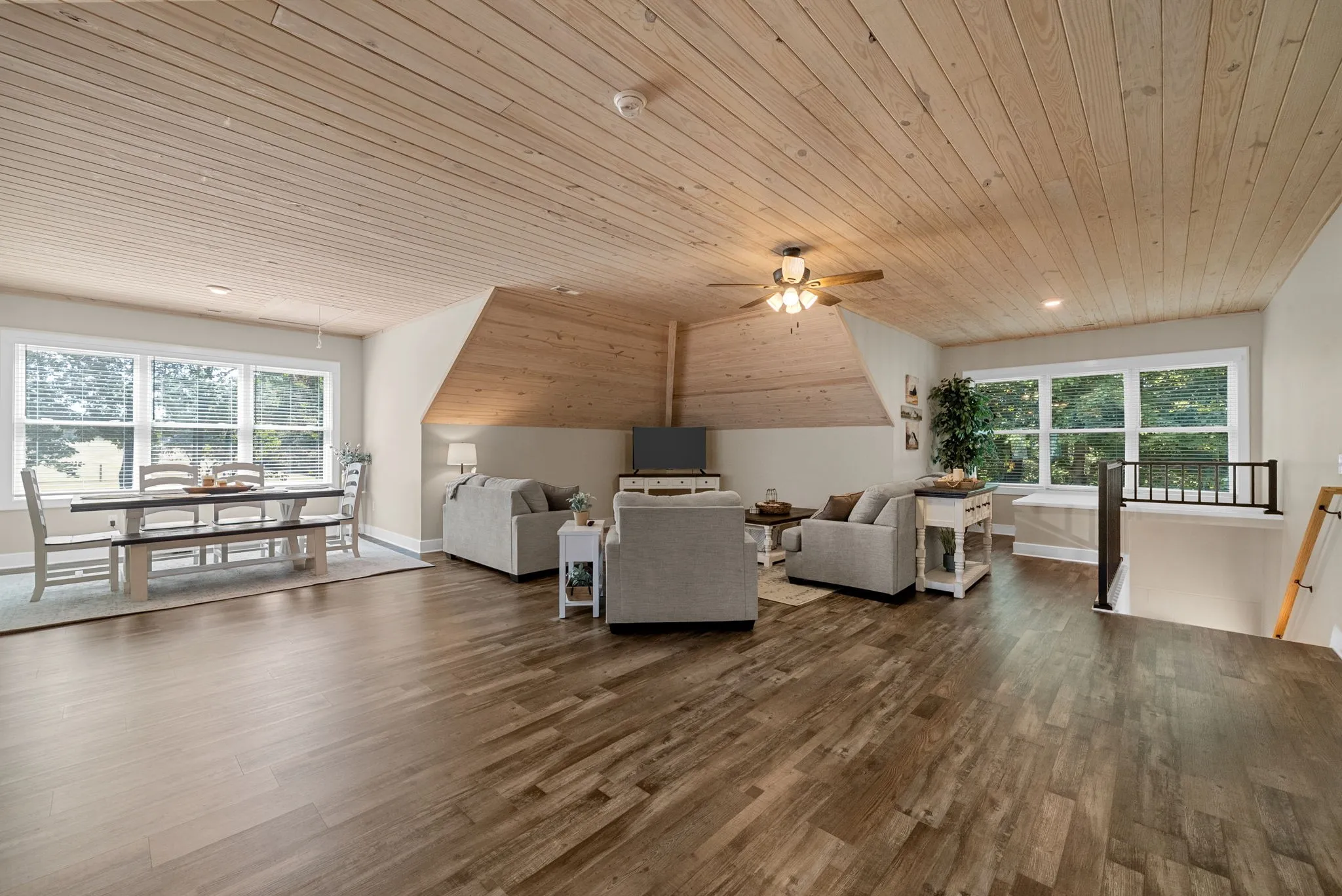 Year-Round Comfort: Two distinct living areas, including a main-level great room with a large gas fireplace.
