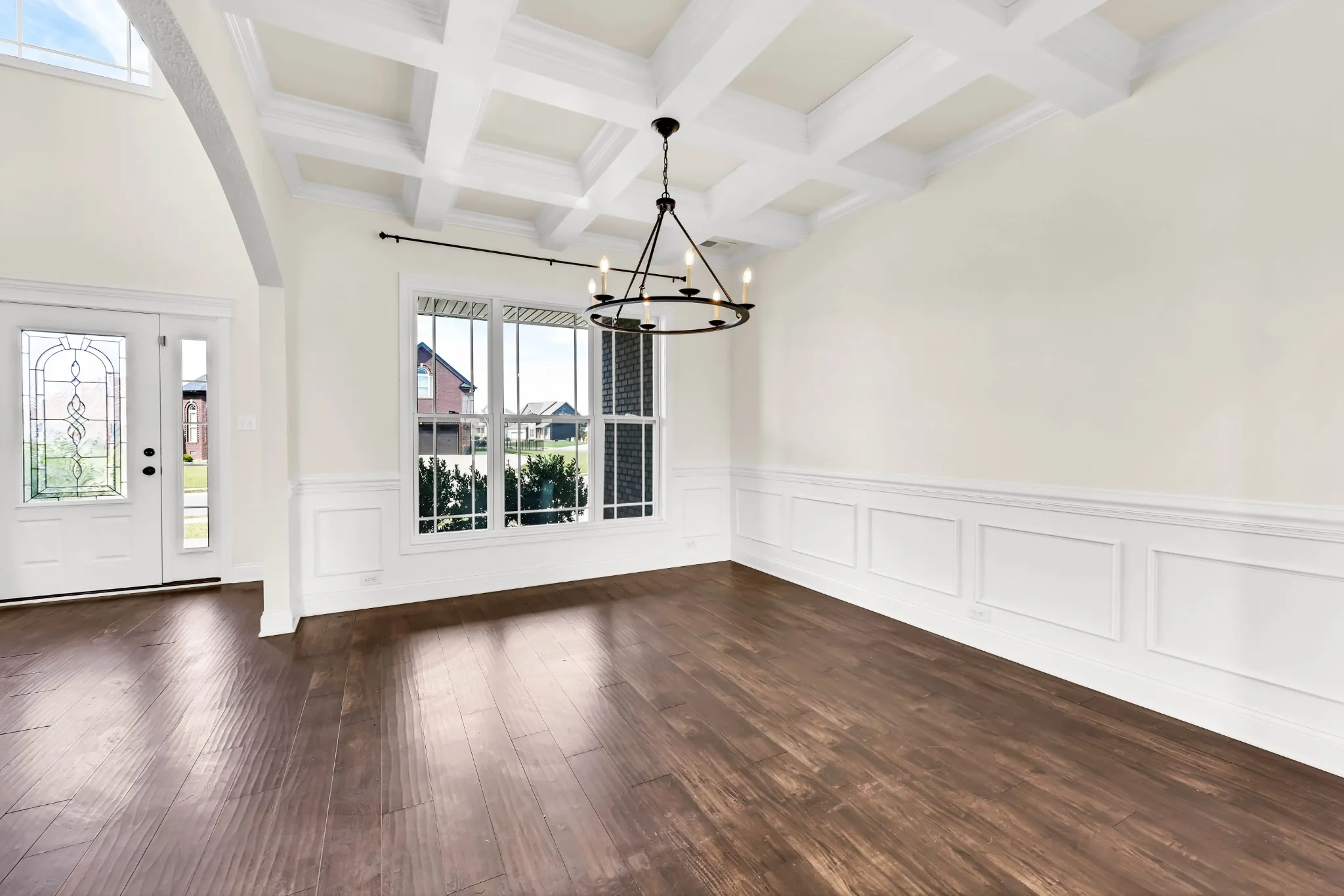 Stunning 3-bedroom, 2.5-bath home with a spacious bonus room offers exceptional design and functionality throughout. Step inside to a soaring living room ceiling with a cozy gas fireplace, perfect for relaxing. The formal dining room features a beautiful coffered ceiling, ideal for gatherings and holiday meals. The expansive kitchen is complete with stainless steel appliances, granite countertops, and a spacious pantry. The oversized primary suite is conveniently located on the main level, offering a true retreat with a spa-like ensuite boasting a double vanity, oversized tiled shower with rainfall shower head, and a huge walk-in closet. Upstairs, you’ll find two additional bedrooms, a full bath, and a versatile bonus room—great for a home office, media room, or playroom. Step outside to a covered patio overlooking a level backyard, perfect for entertaining, grilling, or relaxing year-round.