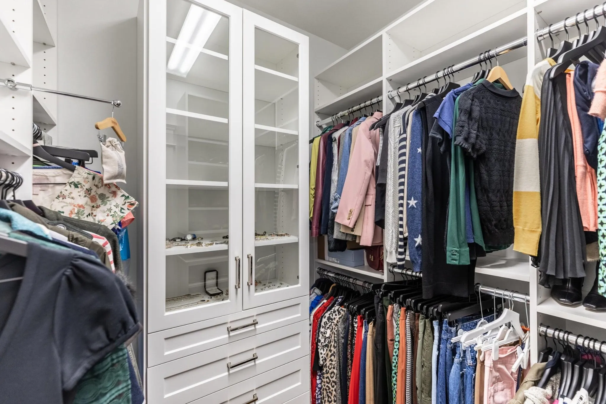The main-level primary suite is a true retreat with tray ceilings, his-and-hers custom built-in closets by Chattanooga Closets, and a newly renovated bath with a 6-ft jetted tub, dual vanities, and a smooth river rock walk-in shower. Additionally, there is a perfectly tucked away powder room and 2 more main-level bedrooms that share a full bath and feature plush new carpeting. Upstairs, an over-sized bonus suite offers flexible living with a private full bath, gigantic closet, walk-out attic storage, and a separate thermostat.\r\n