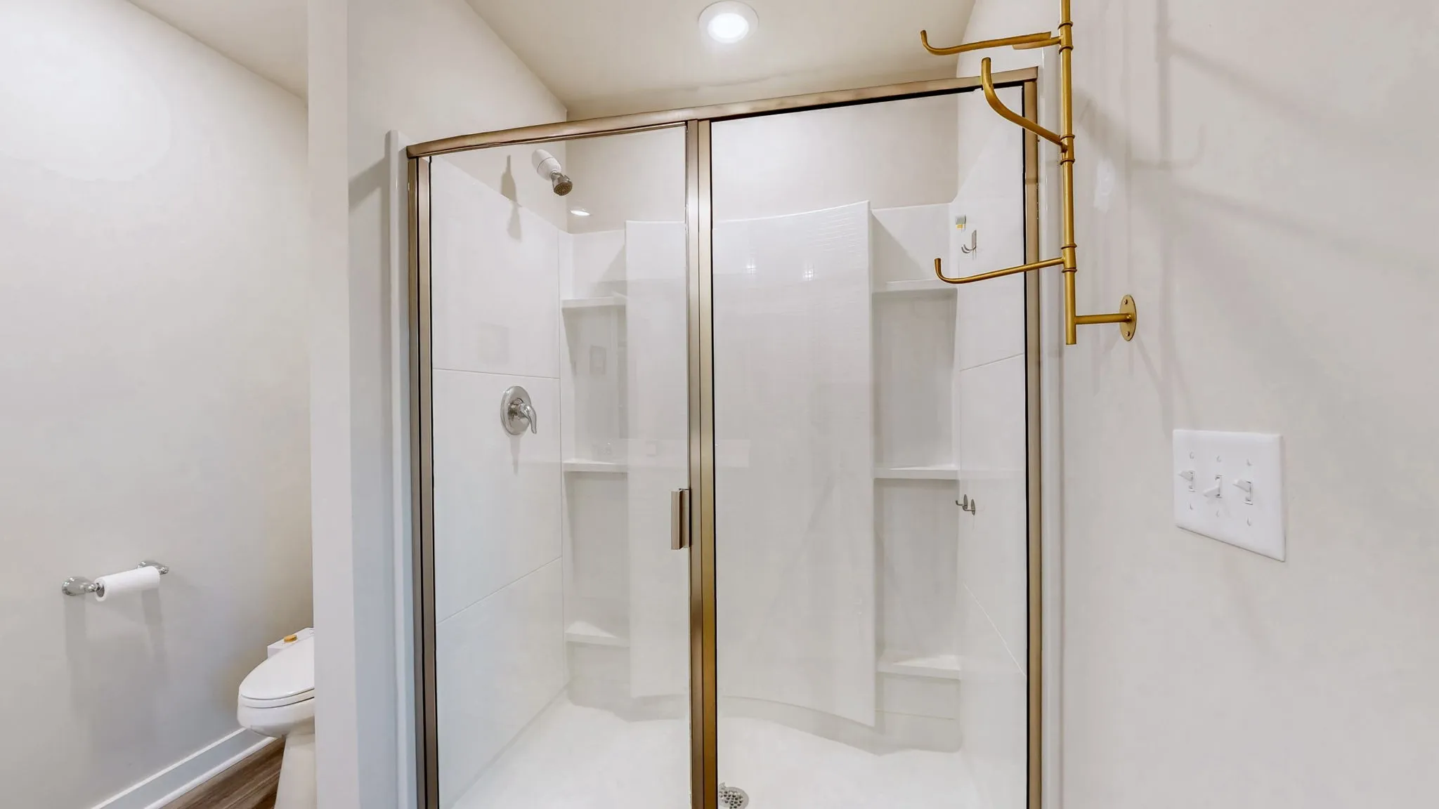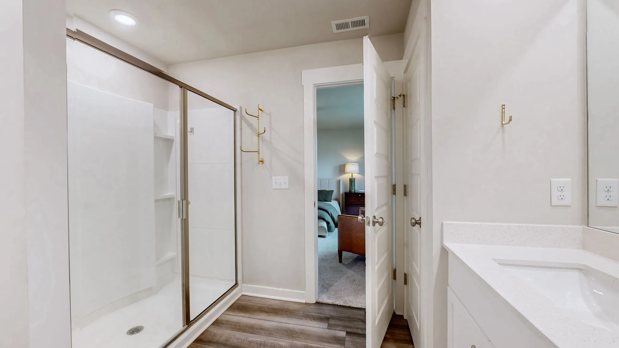 LVP flooring runs throughout the main living areas, bathrooms, and laundry room, offering durability and modern appeal. The primary suite features an oversized glass-enclosed shower, double quartz vanity, and an extra-large walk-in closet. Upstairs, three additional large bedrooms and a loft provide the perfect setup for a playroom, study area, or second living space.