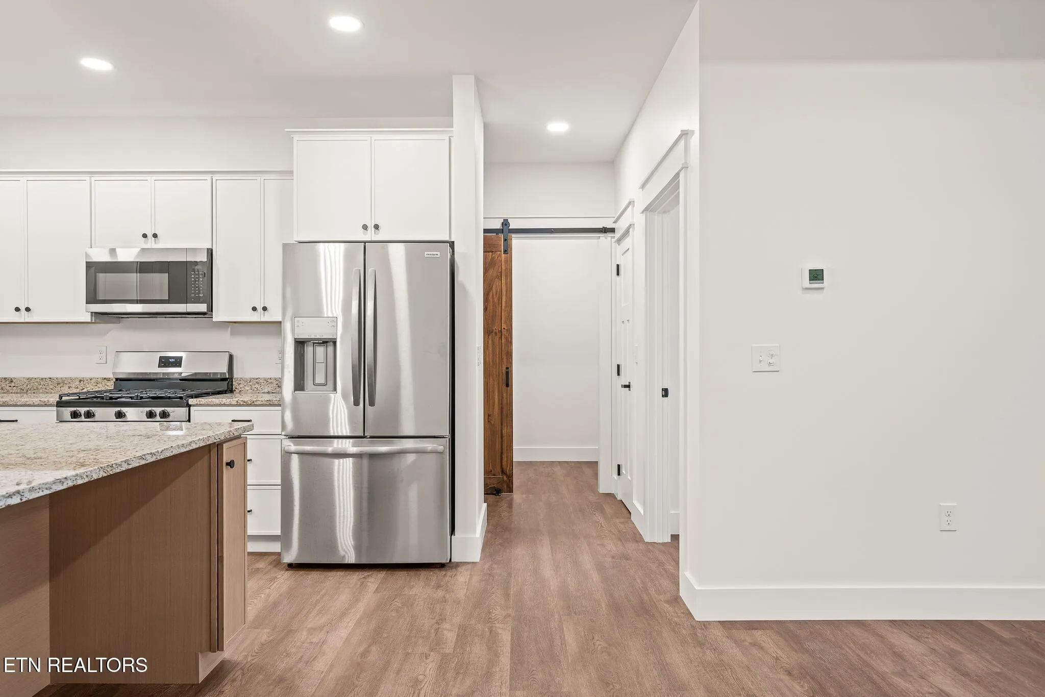 Step inside and feel instantly at home with tall ceilings, beautiful custom trim, and striking rustic beams that capture the warmth and charm of true barndo design. The open-concept living area is anchored by a gas fireplace, flowing seamlessly into a stunning kitchen with a massive granite island, soft-close cabinetry, stainless-steel appliances, and a closet cleverly designed to serve as a pantry if needed.\r\n