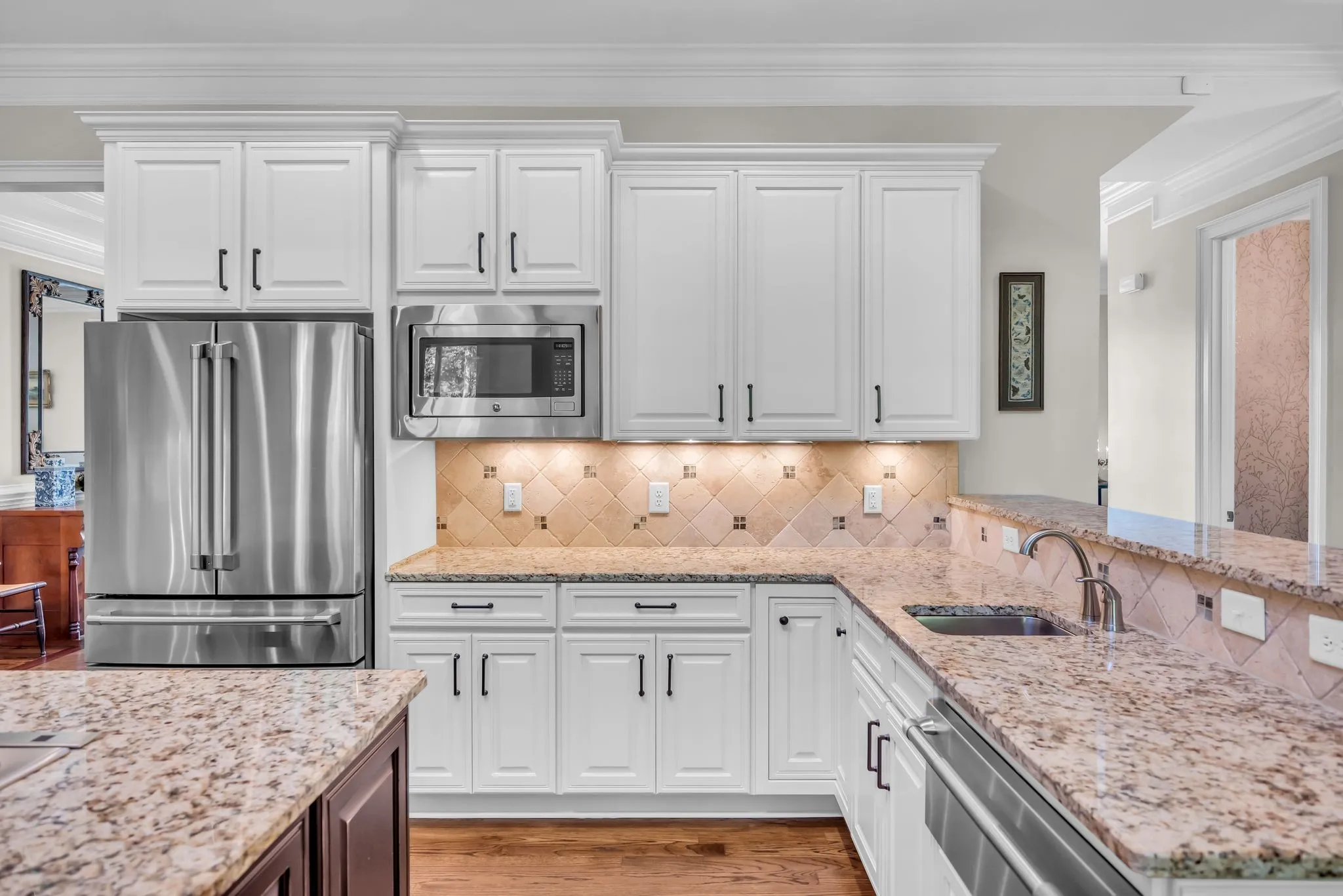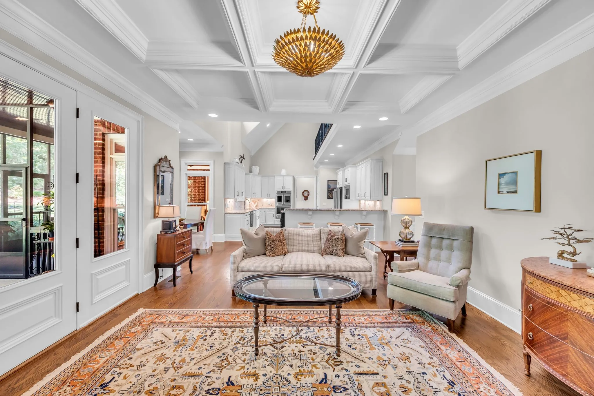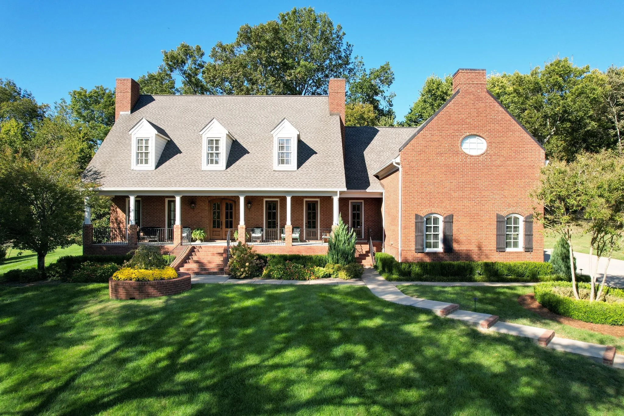 Welcome to this stunning custom built home offering nearly 5,000 square feet of luxurious living space | Perfectly situated on 2.25 beautifully landscaped acres in the prestigious Durham Manor community | Designed for both elegance and comfort, this home boasts 4 spacious bedrooms and 4 full baths, each featuring an ensuite layout for ultimate privacy | Fresh paint throughout | New designer lighting | Gorgeous hardwood floors | Renovated powder room (2025) | Renovated gourmet kitchen (2025) with high end stainless appliances including a warming drawer, generous workspace, custom pullout cabinets and a large walk in pantry ideal for both everyday living and entertaining | Open concept living room features coffered ceilings | The oversized bonus room provides flexible space for a media room, playroom or additional living space | Custom treatments in bonus room | Enjoy the outdoors with multiple patio areas – a screened porch, a covered open porch and an open terrace makes it perfect for family gatherings or quiet relaxation | Lush landscaping | Rain Bird Irrigation System | Leaf Filter Gutter System | The twin oaks in the backyard add a touch of natural beauty and shade | Recent upgrades include three newer HVAC systems (2018), new roof (2022), wireless thermostat upstairs (2023), new “April Aire” humidifier (2024), a tankless water heater (2025), and an encapsulated crawlspace with Santa Fe Advance Dehumidifier | See list in media for additional updates | This exceptional property offers the best of Franklin living – luxury, comfort, and privacy – all within minutes of shopping, dining, and top-rated schools | Experience refined Southern living in this remarkable Durham Manor estate
