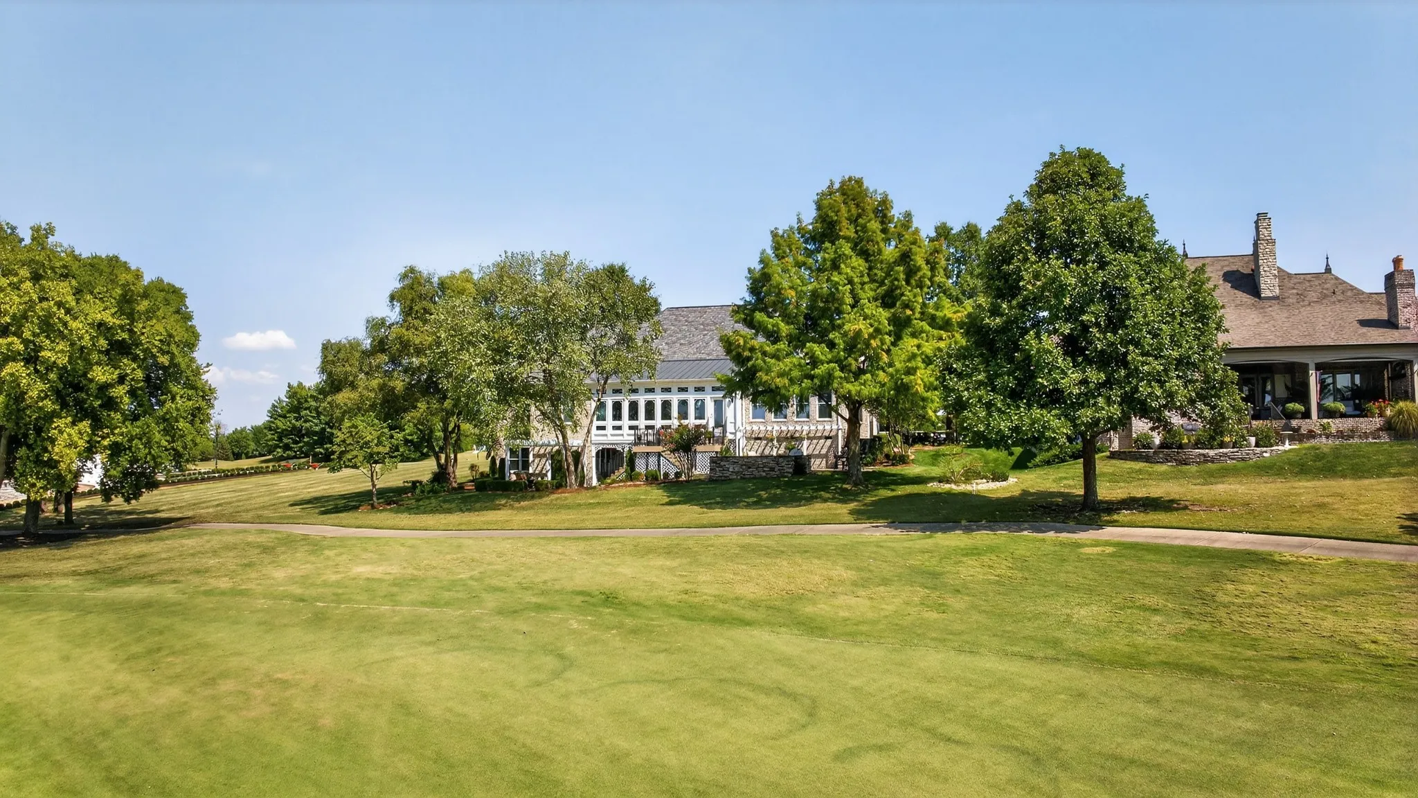This beautiful and well-maintained home (A GOLFER’S DELIGHT) has one of the best views in all of Fairvue as it overlooks the 9th fairway and the lake. Not to mention one of the most convenient locations right next to the clubhouse/restaurant and across the street from the driving range/practice green. Single story living at it’s best with all the luxury you need in a home. Within the last two years, the entire interior of the home has been painted along the pergolas outside, all hardwood has been stained, many new fixtures added, and the HVAC’s and water heater are new, as well. You’ll love sunrises and sunsets over Old Hickory Lake from your spacious Florida Room. The foyer, dining room, living room and den all have fantastic 20″ ceilings to add to the prestige of this top-tier home. The primary suite has a cozy sitting area with a fireplace and stunning view of the golf course and lake. Bonus room has full bath and is currently being used as a bedroom. The closet in the utility room has been plumbed for an additional bathroom (currently set up as a sewing room). The basement is conditioned space and could potentially be converted to an apartment or Mother-In-Law Suite with separate entrance or can be used as a workshop, gardening room, man cave, and more! Lots of possibilities! Plenty of storage. TN Grasslands membership separate from HOA. See link below for more information. Schedule your showing today!