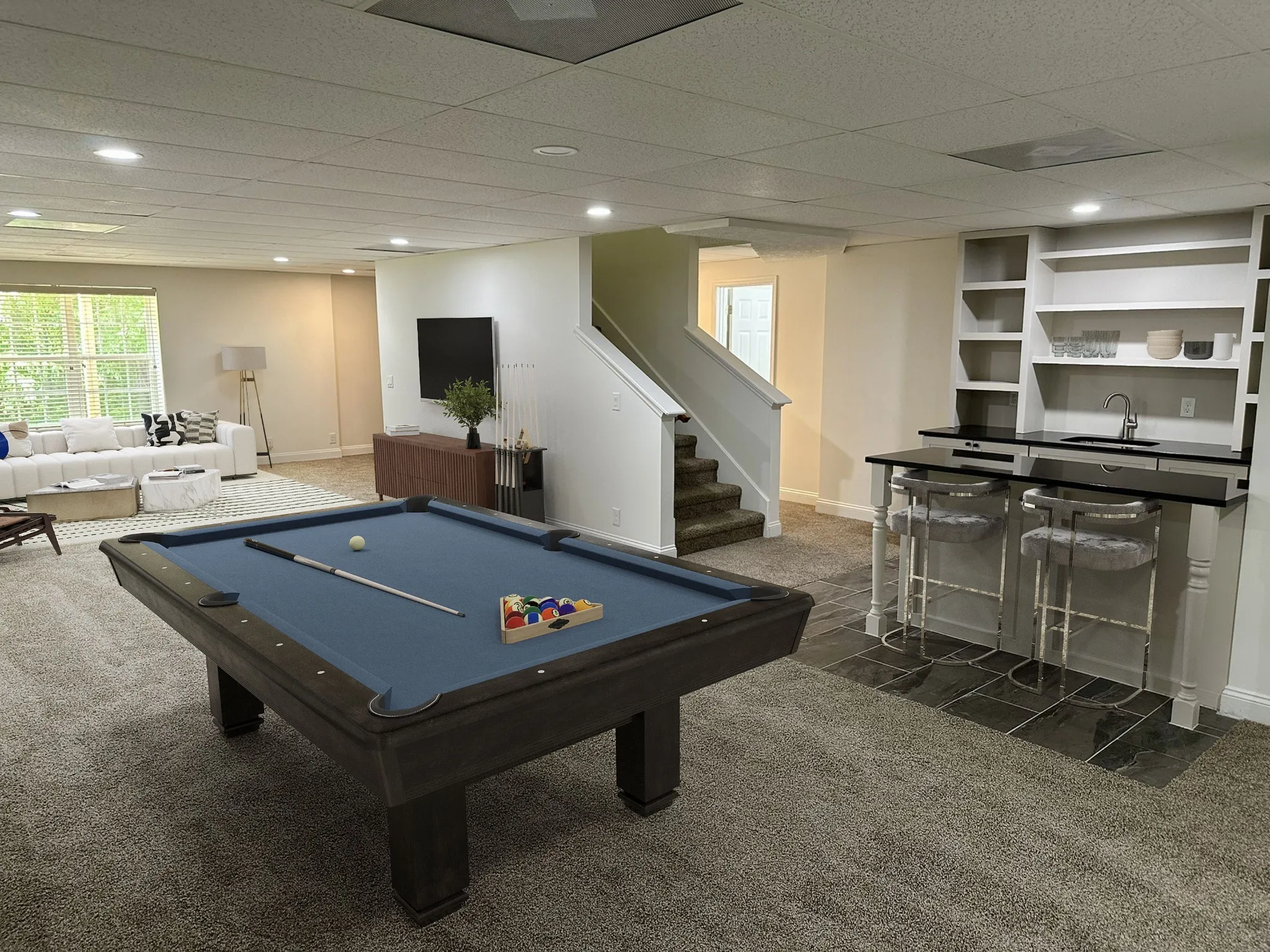 The lower level provides even more versatility with a spacious recreation room that includes a wet bar, a fifth bedroom, and a full bathroom. This level works beautifully for hosting guests, accommodating extended family, or creating a home business setup.\n