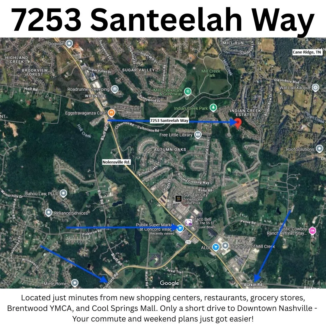 "LongDescription" => "Ariel view - minutes away from Concord Rd., Burkitt Rd., and Nolensville Rd. - Brentwood, TN, Lennox Village, and Downtown Nashville!"