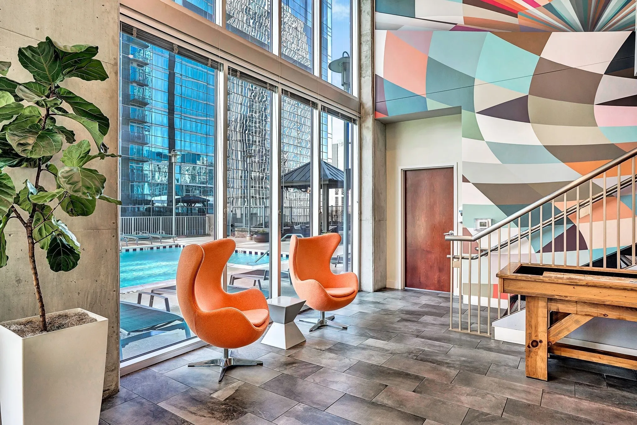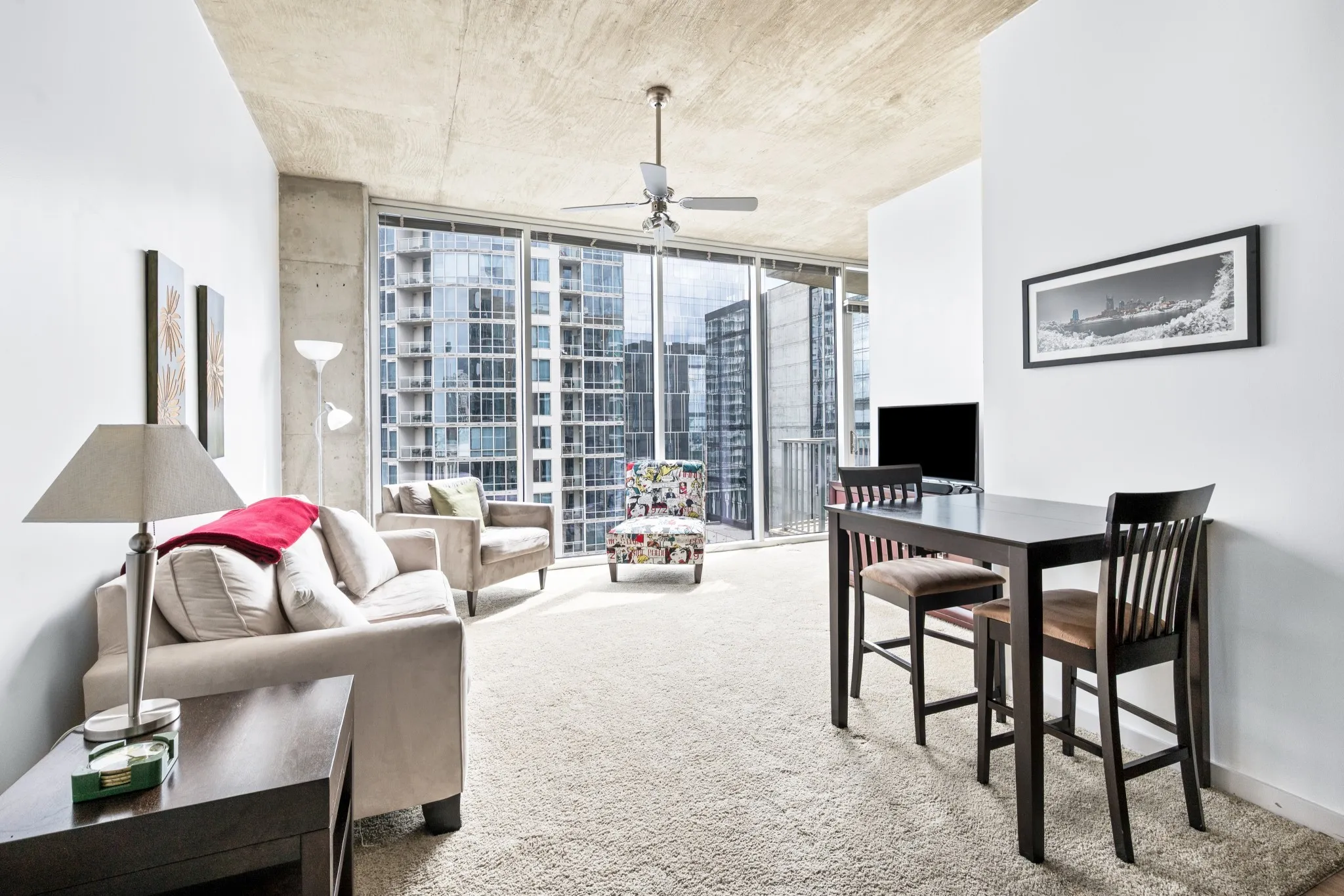 Enjoy breathtaking downtown views from your living space, thanks to floor-to-ceiling windows that flood the home with natural light. The modern open-concept layout is perfect for both relaxing and entertaining.
